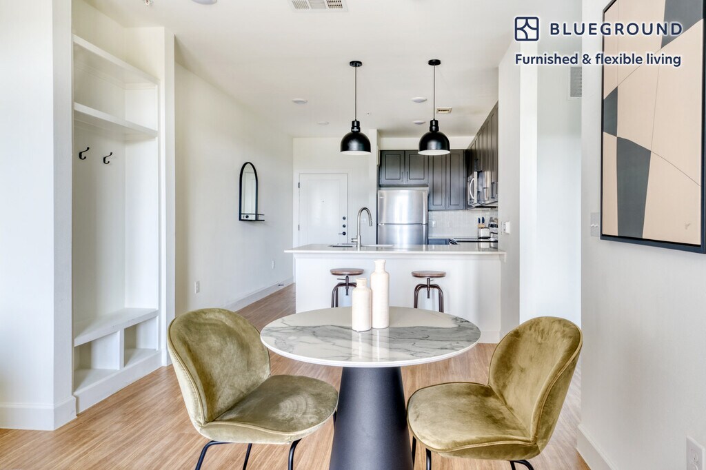 Ofrecemos precios personalizados por cualquier duración. Las tarifas pueden variar según las fechas exactas de mudanza. La tarifa para esta casa comienza en $2,010* / mes. Visita nuestro sitio web e ingresa tus fechas de estadía para ver los precios actualizados para tu reserva específica. *El precio cotizado es: (1) según la mudanza en el primer día en que el apartamento está disponible, (2) aplica solo si se factura por adelantado, puede ser más alto si se factura en múltiples pagos, (3) exclusivo de cualquier impuesto o servicio público. Asista y comience a vivir desde el primer día en Austin con este acogedor apartamento Blueground de un dormitorio. Le encantará volver a su hogar en este hogar del este de Austin, cuidadosamente amueblado, bellamente diseñado y completamente equipado. (ID #ATX71) Diseñado pensando en usted Magnífico mobiliario, cocina totalmente equipada, televisor inteligente y altavoz inalámbrico premium son solo algunas de las comodidades que encontrará dentro de este apartamento de un dormitorio. Con una ubicación ideal en Austin, también encontrará mucho que amar al aire libre. Cuando esté listo para relajarse, estará encantado de descubrir que cada dormitorio Blueground cuenta con colchones de calidad superior, sábanas de lujo y toallas acogedoras. Nosotros nos encargamos de todo para que usted pueda simplemente presentarse y comenzar a vivir. Este apartamento también ofrece lavandería en el apartamento. Servicios para dormir con cama Queen de 160 cm Los servicios del edificio exclusivos de este dormitorio incluyen: - Área de barbacoa - Secador - Ascensor - Gimnasio - Piscina - Lavadora - Salón - Aparcamiento - Se permiten mascotas Llegada y asistencia continua ¡Todo el apartamento es suyo! Un miembro del equipo de Blueground te dará la bienvenida personalmente o te dará instrucciones de auto check-in. Durante su estancia, tendrá acceso a nuestro equipo de experiencia del cliente a través de la aplicación Blueground. Puedes programar limpiezas adicionales, enviar solicitudes de mantenimiento y ver las recomendaciones de nuestro vecindario con solo unos pocos toques. Compartiremos todos los detalles tras la confirmación de su estancia. Con una ubicación ideal Este apartamento amueblado está ubicado en el este de Austin, uno de los vecindarios más modernos y diversos de la ciudad. La zona alberga una próspera escena nocturna que incluye cervecerías, bares de cócteles y lugares de música en vivo como el albergue nativo y la parroquia. Cualquier persona a la que le guste hacer compras se deleitará con la selección de boutiques del este de Austin como Take Heart y Raven + Lily. El panorama gastronómico también es ecléctico, con todo, desde fusión asiática hasta gastropubs y la mundialmente famosa barbacoa Franklin, considerada por muchos como la mejor barbacoa de los Estados Unidos. Otras cosas que hay que tener en cuenta Las amenidades del edificio pueden tener un costo adicional. Este apartamento de Blueground tiene opciones de arrendamiento flexibles, lo que te permite reservarlo por un mes, un año o más. Las mascotas son bienvenidas, aunque se aplican límites de peso y restricciones de raza y pueden incurrir en cargos. El estacionamiento se ofrece según la disponibilidad y está sujeto a un cargo. Nos enorgullecemos de asegurarnos de que cada foto que se muestre se tome en nuestros propios apartamentos con nuestro mobiliario real. Dicho esto, actualizamos regularmente nuestra decoración y disposición de muebles, que pueden diferir de lo que se muestra en la imagen.