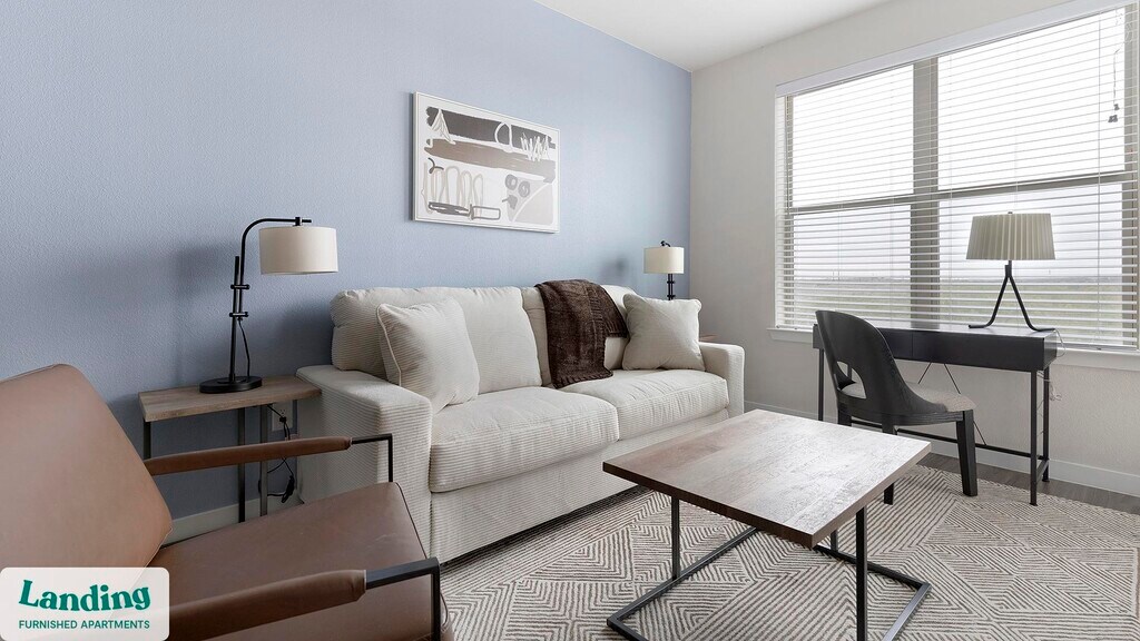 Landing offers flexible lease terms from weeks to months. Please always visit our website or contact us for the latest pricing & availability. Stay longer, save more: 6-Month Minimum base rent: starts at $1728/mo 12-Month Minimum base rent: starts at $1546/mo Landing offers flexible leases across a network of over 35,000 fully-furnished apartments throughout 375+ cities so you can rent on your terms, practically anywhere, and avoid the hassle of paying deposits or application fees. Visit to learn about all the benefits of a Landing membership, see our competitive up-to-date pricing, explore available apartments, take virtual tours, and make reservations online without jumping through traditional rental hoops. Landing's apartments at Lyric at the Merc are designed for comfortable, easy living, with the ability to stay as long as you like. Experience living with Landing Every apartment is outfitted with all the modern essentials including: custom-designed furnishings, a fully-equipped kitchen with deluxe stainless steel appliances, a gourmet coffee maker, premium linens, Smart TVs, and incredibly fast, reliable internet for working from home. When you live with Landing, you'll enjoy a hassle-free experience with the added benefit of 24/7 access to our dedicated member experience team. Some of the nitty-gritty: a background check and proof of income are required; we're completely smoke-free; bundled utility packages and pricing vary based on length of stay; pet-friendly options available; listed price reflects a 12-month minimum stay.