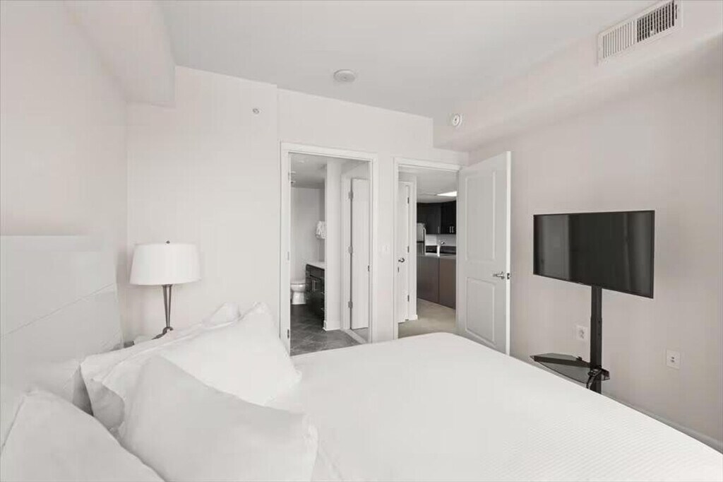 Stay with us at Metropolitan Park and experience modern living in the heart of Pentagon City. Located just blocks away from two metro stations, a 15-minute walk to The Pentagon, and a 10-minute drive to the Capitol, this apartment features a designer kitchen, full bathroom, and living and bedroom space. Building amenities include a rooftop pool, salon with massage room, fitness center, and more! Luxury Suites at Metropolitan Park offers a world of comfort and convenience. At the center of National Landing Business, you’re set in Crystal City, Pentagon City, and Potomac Yard. Throughout the apartment, you will find modern conveniences, colorful artwork, crisp bedding, and stainless steel appliances. The kitchen features stainless steel appliances including an electric range, a microwave, and a dishwasher, and the cabinets are stocked with dishes, cutlery, and cookware. The living room is designed for relaxing, with a large flat-screen TV, comfy couches, and soothing artwork on the walls. In the bathroom, contemporary fixtures include a shower/bath combination, vanity, and drawers for storage. Fluffy towels and free toiletries are provided for your convenience. Building amenities include a large lobby, communal lounge, rooftop pool with lounge chairs, rooftop with skyline views, BBQ grills and outdoor seating, communal kitchen, business center, meeting room, and more. Our location is truly our greatest amenity, putting you in the middle of an amazingly walkable and convenient location in the National Landing Business Improvement District, which contains three thriving neighborhoods: Crystal City, Pentagon City, and Potomac Yard. The Millennium at Metropolitan Park blends the best of city living and the urban outdoors. Elevator 2 and 4 are non-operational. [SI]