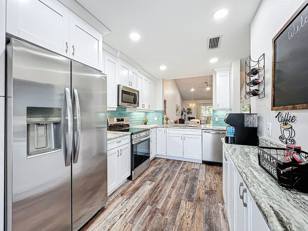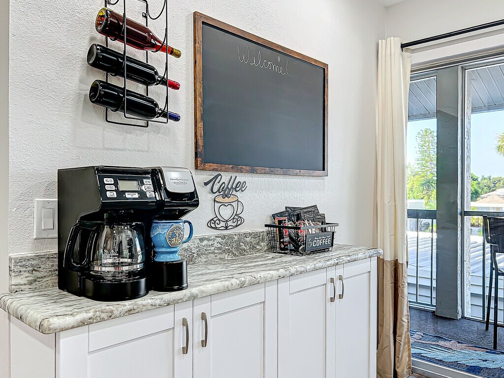 Property Id: 2433974 This charming 2-bedroom, 2-bath fully furnished, turnkey condo in beautiful Venice, Florida, has been completely renovated and is move-in ready! The light and breezy interior features no carpeting, fresh cabinets, brand-new appliances, vibrant Florida colors, a convenient coffee/wine bar, a breakfast bar, and seating for four at the dining area. Relax on modern leather furniture while enjoying a big-screen flat-screen TV with cable and high-speed internet. Every room showcases a gallery of original artwork. Two screened lanais provide relaxed outdoor living: start your mornings with coffee on the charming front screened porch, accessible right off the kitchen's sliding glass door. The open, cross-breezy layout feels airy and inviting throughout. The primary bedroom offers a plush king bed, while the guest room has twin beds (comfortably sleeps 4 total). Both bathrooms have been newly remodeled, and the condo includes an in-unit washer and dryer. Community perks include access to 2 sparkling pools and 2 clubhouses, exercise machines, a kayak launch, and a fishing dock. Plus, there is covered parking with storage. Ideal for seasonal stays, snowbirds, or short-term vacations in this relaxed beach-town paradise. Nestled in the heart of Florida's Gulf Coast fun, it's just minutes from pristine beaches, historic downtown shopping and dining, world-class golf, and endless vacation vibes. Schedule a viewing today!