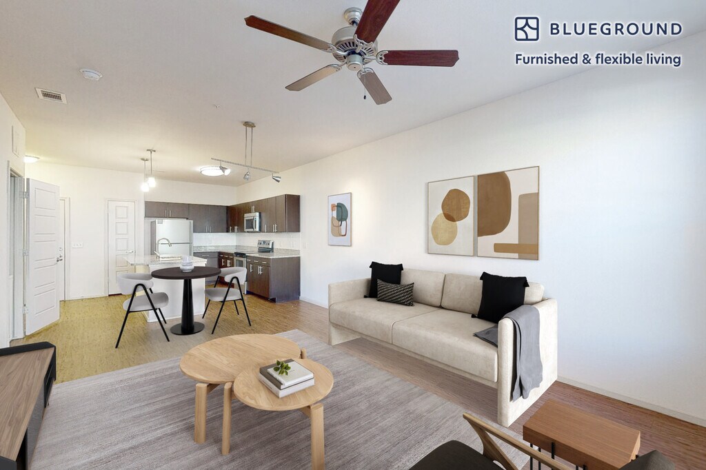 Staged photos of matching layout and similar décor Imagery shows same floorplan and building, and similar décor as we finish photographing this new unit. Be the first to rent! Discover the best of Lakewood, with this two bedroom apartment in Denver West. It’ll be easy to simply show up and start living in this furnished apartment with its fully equipped kitchen, living room, and our dedicated, on-the-ground support. (ID #DEN1579A) The advertised rate of $3,450/month is the lowest available price, based on a 12 month(s) and 30 day(s) stay with a move-in date of October 5, 2025. Rates vary depending on the duration of stay, season, and other parameters. For exact pricing and additional pricing components, please visit our website and enter your desired move-in and move-out dates. The rate is applicable when billed upfront; it can be higher if billed in multiple payments. Brokers are welcome to reach out. Were you looking for an unfurnished lease? Try Blueground instead and upgrade from unfurnished to furnished living: - Furnished at rates comparable to unfurnished - No setup or furniture costs - save thousands - Move-in ready - save time, just bring your suitcase Designed with you in mind Thoughtfully designed with bespoke finishes, modern furnishings, and a fully equipped kitchen, you’ll enjoy that “I’m home” feeling with this Blueground apartment. Whether you’re lounging in your beautiful living room streaming the latest and greatest entertainment on the smart TV or premium wireless speaker, or getting some well-earned rest on the superior quality mattress with luxury linens, you’ll fall in love with everything this Denver West apartment has to offer. This apartment also offers in-apartment laundry. Amenities Building amenities unique to this two bedroom apartment include an on-site: - Dryer - Washing machine - Parking - Pets allowed Arrival and ongoing support The entire apartment is yours to enjoy! Throughout your stay, you’ll have access to our Client Experience team through the Blueground App. You can schedule additional cleanings, submit maintenance requests, and view our neighborhood recommendations with just a few taps. We’ll share all details upon confirmation of your stay. Other things to note Photos show same floorplan and building, and similar decor as we finish photographing this new apartment. This Blueground apartment has flexible lease options, allowing you to book it for one month, a year, or more. Pets are welcome, though weight limits and breed restrictions apply and may incur fees. Parking is offered based on availability and is subject to a fee. Please keep in mind that this is a walk up building. We take great pride in ensuring every photo displayed is shot in our own units with our actual furnishings. That said, we regularly refresh our decor and furniture arrangement, which may differ from what’s pictured.