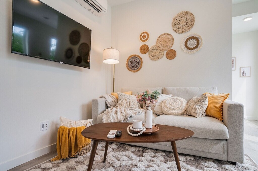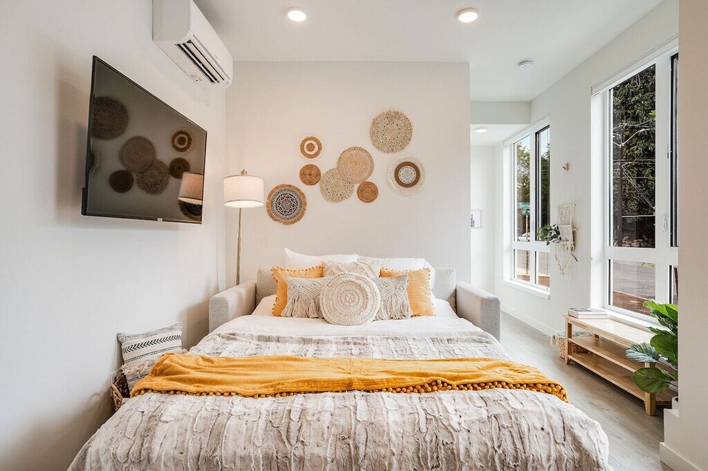 Feel at home in this recently constructed and modern townhome. This 2-bedroom, 2-bathroom home offers 956 sqft of living space. This is a 4-story townhome (including the rooftop) with a few steps at the entrance. This home features a great floor plan with beds and baths on different levels, perfect for group travel. Mini-split air conditioning keeps you cool during the summer heat, and big windows provide lots of natural light. The kitchen is stocked with high-end kitchen appliances, cookware, silverware, servingware, spices, Keurig coffee, and tea. High-quality beds, mattresses, pillows, and linens ensure comfortable sleeping. A smart TV and high-speed internet (download speed up to 1200 mbps) are available for streaming or remote work needs. An on-site washer and dryer are available for your laundry needs. Enjoy the rooftop patio with comfortable outdoor furniture for an al fresco experience. Well-trained pets are welcome for a fee of $50 per pet per night. Centrally located, this townhome is within 10 minutes of Amazon, G, Meta, UW, Seattle Japanese Garden, and Pike Place Market. Walk to tons of restaurants, coffee shops, city park, bus stops (line 8, 10, 43), and the link light rail station. The Pike/Pine Corridor in Capitol Hill is an iconic Seattle neighborhood and a prominent hub for food, music, and nightlife. You'll find excellent brunch and coffee shops, fantastic dining and shopping, bustling nightlife and award-winning bars, world-class entertainment and live music, and enviable transit options. This is a pet-friendly home, but please refrain from allowing pets on furniture/linens, including couches, throws, beds, pillows, and towels. Please do not leave pets unattended and bring poop bags to clean up after your pets. Parties and events are strictly prohibited, and quiet hours are between 10 pm and 8 am. Smoking or vaping of any kind is not allowed anywhere on the property, including outdoor areas. Digital piracy and shoes in the home are prohibited. A $500 fine will be charged per violation. The home does not have dedicated parking. A city-issued guest parking permit is provided for free street parking. Capitol Hill is a densely populated area, so street parking is first-come-first-served and can be hard to find depending on the time of day. Paid public parking is available nearby. Construction on 14th Ave is ongoing from Monday to Friday, 8 AM to 5 PM. Please refrain from parking in front of the construction site during these hours. The entire home is included in this rental. Guest access will be granted via a door code. Registration Number: STR-OPLI-22-000944 [SI]