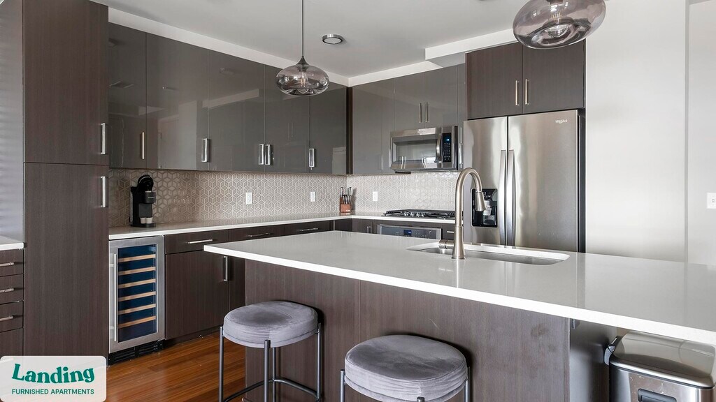 Landing offers flexible lease terms from weeks to months. Please always visit our website or contact us for the latest pricing & availability. Stay longer, save more: 6-Month Minimum base rent: starts at $3332/mo 12-Month Minimum base rent: starts at $3169/mo Landing offers flexible leases across a network of over 35,000 fully-furnished apartments throughout 375+ cities so you can rent on your terms, practically anywhere, and avoid the hassle of paying deposits or application fees. Visit to learn about all the benefits of a Landing membership, see our competitive up-to-date pricing, explore available apartments, take virtual tours, and make reservations online without jumping through traditional rental hoops. Landing's apartments at The Hayworth are designed for comfortable, easy living, with the ability to stay as long as you like. Experience living with Landing Every apartment is outfitted with all the modern essentials including: custom-designed furnishings, a fully-equipped kitchen with deluxe stainless steel appliances, a gourmet coffee maker, premium linens, Smart TVs, and incredibly fast, reliable internet for working from home. When you live with Landing, you'll enjoy a hassle-free experience with the added benefit of 24/7 access to our dedicated member experience team. Some of the nitty-gritty: a background check and proof of income are required; we're completely smoke-free; bundled utility packages and pricing vary based on length of stay; pet-friendly options available; listed price reflects a 12-month minimum stay.