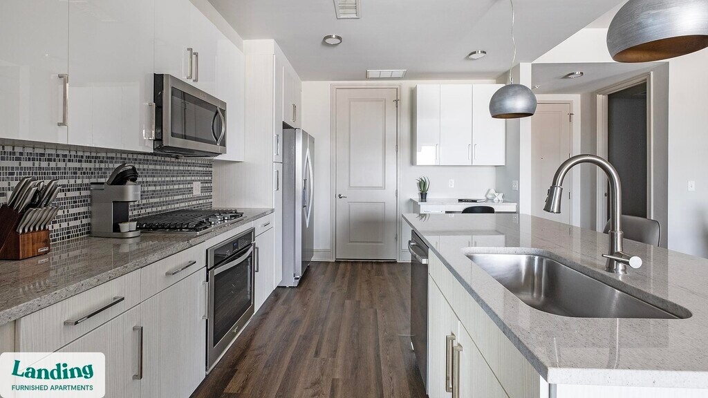 Landing is a top-rated, fully furnished apartment network with thousands of homes across 250+ U.S. cities. With premium amenities, a mobile app to manage your stay, and 24/7 support. Our apartments have everything you need for monthly and longer stays.: 6-Month Minimum base rent: starts at $3368/mo 12-Month Minimum base rent: starts at $3237/mo Landing's apartments at The Hayworth are designed for comfortable, easy living, with the ability to stay as long as you like. All Landing apartments include: - Fast Wi-Fi - Stylish furnishings - Fully-stocked bathroom - Smart TVs - Comfortable bed - Professionally cleaned - Guest support Stay longer for cheaper! The longer you stay, the bigger your discount. Price advertised is for a 12-month stay, including all utilities and fees, and may vary based on availability. We manage multiple units at this property. While all feature a similar style and furnishings, the layout and specific design elements may vary slightly from the photos provided. Some of the nitty-gritty: a background check and proof of income are required; we're completely smoke-free; pet-friendly options are available; parking is subject to availability.