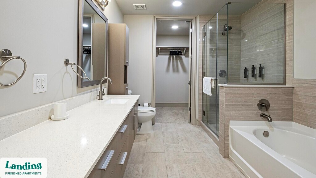 Landing is a top-rated, fully furnished apartment network with thousands of homes across 250+ U.S. cities. With premium amenities, a mobile app to manage your stay, and 24/7 support. Our apartments have everything you need for monthly and longer stays. 6-Month+ Stay base rent: starts at $3439/mo 12-Month+ Stay base rent: starts at $3237/mo Landing's apartments at The Hayworth are designed for comfortable, easy living, with the ability to stay as long as you like. All Landing apartments include: - Fast Wi-Fi - Stylish furnishings - Fully-stocked bathroom - Smart TVs - Comfortable bed - Professionally cleaned - Guest support Stay longer for cheaper! The longer you stay, the bigger your discount. Price advertised is for a 12-month stay, including all utilities and fees, and may vary based on availability. We manage multiple units at this property. While all feature a similar style and furnishings, the layout and specific design elements may vary slightly from the photos provided. Some of the nitty-gritty: a background check and proof of income are required; we're completely smoke-free; pet-friendly options are available; parking is subject to availability.
