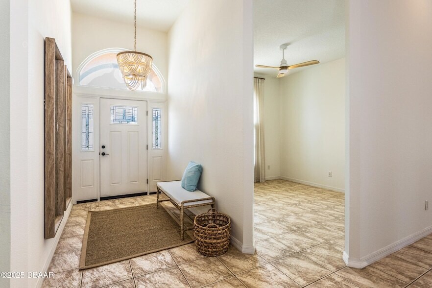 One or more photo(s) has been virtually staged. Live the Beach lifestyle! This beautiful three bedroom block home features an office that could be a fourth bedroom, two full bathrooms, two car garage, shed and large backyard. The house is nestled on a peaceful cul-de-sac in the highly desired neighborhood of Pelican Dunes. Freshly painted, high ceilings, open floor plan, split bedrooms, large walk in closet in primary suite, plenty of storage throughout and all tile floors just perfect for beach life! Enjoy outside living with a glass enclosed patio, circular driveway with tons of parking, tropical plants and trees and a quick jaunt to the beach or the river. Enjoy the refreshing beachside breezes every day from this lovely piece of paradise! This rental will feel like home! Pets are allowed and all lawn care and trash removal are taken care of by the landlord. Thirty day minimum rentals are allowed in this area of the county. Perfectly nested between Ormond Beach and Flagler Beach which offers every fun coastal restaurant and shop that you can imagine. Surf in the morning, walk the dog on Flagler Beach or at the dog park close by and ride your golf cart to dinner! It's a beautiful life!