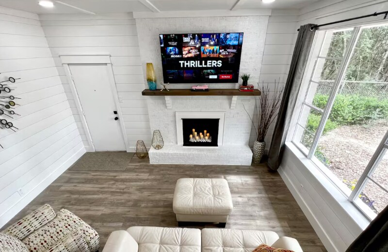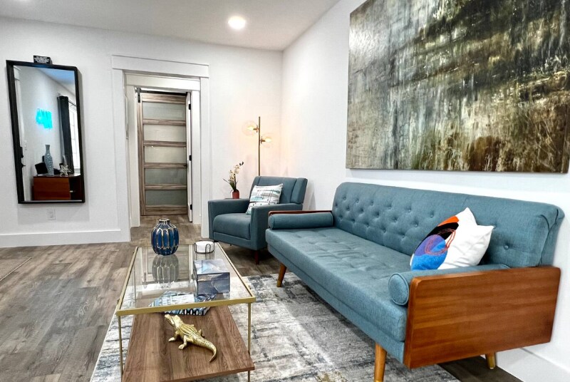 Property Id: 2346237 Ideally located just 8 minutes to EOD, 15-20 minutes to Eglin AFB, and 10 minutes from Destin's iconic white-sand beaches and crystal-clear waters, this completely renovated 3-bedroom, 2-bath Mid-Century Modern home blends retro charm with modern luxury. Set in a private setting with bay views, this 1,600 sq ft home features high-end finishes, upgraded amenities, and a playful POP ART aesthetic that makes it truly one of a kind. Inside, the home offers two distinct living areas, each with its own vibe. One space is perfect for relaxing, visiting, listening to music, or reading, while the sunken living room serves as a cozy TV lounge complete with a candle-lit fireplace. The fully remodeled kitchen is fully loaded with all new appliances, a custom island, modern cabinetry, and everything needed for cooking and entertaining. Outdoor living is just as impressive. Enjoy morning coffee or evening wine on two porches, a large fully screened side patio with vintage dining table and string lighting, & a custom built-in propane grill in the private, fully fenced backyard. The front yard is oversized & ideal for RV, boat, or water toy parking, & you're just 1 mile from the boat launch & local beach. Bedrooms & Baths All bedrooms are large & thoughtfully themed: Primary Suite: King bed, private bath with walk-in shower, double vanity, huge walk-in closet, wall-mounted TV, blackout curtains, POP ART theme Bedroom 2: Queen bed, large mirrored closet, blinds and curtains, music-themed decor Bedroom 3: Bunk room with double bottom bunk and single top bunk, large mirrored closet, surf-themed decor (Bunk beds can be swapped for a king bed if desired) Additional Features: Fully equipped kitchen Laundry room with washer, dryer, drying rack, vacuum & brooms Utilities included, linens & towels provided Central AC/Heat This home is perfect for those seeking privacy, style, and proximity to the best of Destin and the Emerald Coast whether for work, play, or extended stays.