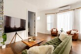 Live out your mid-century modern dream in this newly renovated Southeast charmer. Perfectly situated in the heart of Hawthorne, you can walk to the best shows, thrift shops, and restaurants in seconds. This home was thoughtfully renovated with an emphasis on living local, featuring floors, cabinets, and cabinet pulls all manufactured in the Northwest using sustainable practices. This fully renovated mid-century modern gem was designed with one goal in mind: "Bring mid-century alive today." Enjoy modern amenities, including new appliances, windows, A/C, Gigabit speed fiber internet, YouTube TV, and Netflix. Fall in love with custom walnut cabinets, expansive windows, and an original teak record cabinet repurposed as a vanity. If you have a car, on-street parking is available, though it may be limited during peak hours. For longer stays or guaranteed spots, there are nearby parking garages and lots that offer hourly or daily rates. Hawthorne, often hailed as the Heart of Portland, truly lives up to its reputation. This vibrant neighborhood boasts some of the city's best restaurants, concert venues, and vintage thrift stores, all lining the bustling streets. You could easily spend your entire trip exploring these few blocks and never run out of exciting options. The dining scene in Hawthorne is unparalleled, offering a diverse array of culinary delights. From farm-to-table eateries and trendy brunch spots to food carts serving global cuisines, there’s something to satisfy every palate. Don’t miss out on iconic local favorites like Apizza Scholls and Por Qué No. Music lovers will appreciate the live music venues scattered throughout the area, featuring both local talents and touring artists. Catch an intimate show at the historic Aladdin Theater or groove to the beats at the cozy Hawthorne Theatre. For those who love to shop, Hawthorne is a treasure trove of unique finds. Wander through the numerous vintage and thrift stores, where you can discover one-of-a-kind clothing, retro furniture, and eclectic home decor. Powell’s Books on Hawthorne is a must-visit for book enthusiasts, offering a vast selection of new and used books. In addition to its culinary and cultural offerings, Hawthorne is home to charming cafes, craft breweries, and quirky boutiques. Take a leisurely stroll, grab a coffee, and soak in the neighborhood's distinctive, laid-back vibe. Whether you’re here for a weekend or an extended stay, Hawthorne promises an authentic and unforgettable Portland experience. Quiet hours are between 10 PM and 8 AM. Smoking, including marijuana, is prohibited, and pets and parties are not allowed. [SI]