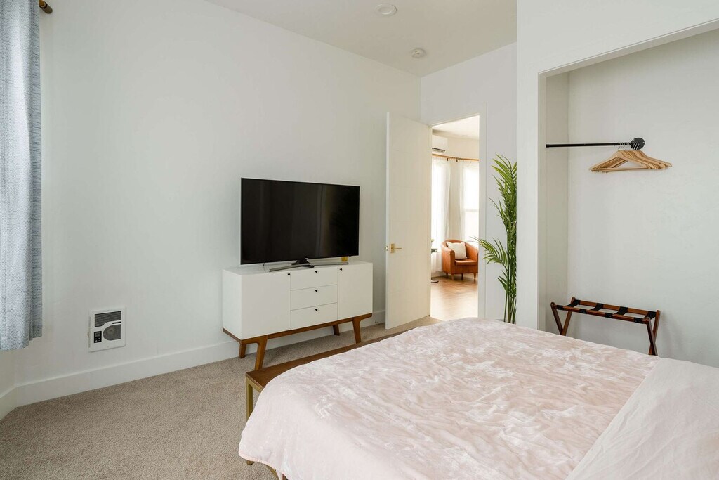 The advertised rate of $8,418/month is the lowest available price, based on a 1 month(s) stay with a move-in date of September 1, 2026. Rates vary depending on the duration of stay, season, and other parameters. For exact pricing and additional pricing components, please visit our website and enter your desired move-in and move-out dates. The rate is applicable when billed upfront; it can be higher if billed in multiple payments. Feel at home in this stylish, fully renovated mid-century modern home in the heart of Hawthorne. This home features 3 bedrooms, 2 full baths, and is within walking distance of Hawthorne's best restaurants, thrift shops, live music, and cafes. This gem was designed to bring mid-century alive today with modern amenities, including new appliances, windows, and central AC and heat. Fall in love with custom walnut cabinets, expansive windows, and an original teak record cabinet repurposed as a vanity. The modern kitchen is fully equipped with new appliances. Enjoy Gigabit speed fiber internet, YouTube TV, and Netflix. Free off-street parking is available. Hawthorne, often hailed as the Heart of Portland, boasts some of the city's best restaurants, concert venues, and vintage thrift stores, all lining the bustling streets. The dining scene in Hawthorne is unparalleled, offering a diverse array of culinary delights. Music lovers will appreciate the live music venues scattered throughout the area, featuring both local talents and touring artists. For those who love to shop, Hawthorne is a treasure trove of unique finds. Wander through the numerous vintage and thrift stores, where you can discover one-of-a-kind clothing, retro furniture, and eclectic home decor. Powell’s Books on Hawthorne is a must-visit for book enthusiasts, offering a vast selection of new and used books. The Belmont and Hawthorne corridors are among Portland's most vibrant, with an eclectic mix of restaurants, vintage shops, cafes, and bars all within walking distance. TriMet Route 15 (Belmont) runs along Belmont Street with frequent service every 15 minutes to downtown (~15 min). Route 14 (Hawthorne) is also nearby. BIKETOWN bike-share stations are nearby, and Portland's bike lane network makes cycling easy and safe. PDX is about 14 minutes by car or a quick MAX + bus connection. Quiet hours are in effect from 10 PM to 7 AM, as per building and city ordinance. Smoking tobacco or marijuana inside is strictly prohibited and, if detected, will result in a $150 penalty. Events and/or parties are strictly prohibited and will result in fines per host discretion and immediate eviction. The number of guests on your reservation should reflect the number of guests staying in the home. Any unauthorized guest is subject to a $150/guest penalty. Unauthorized use of extra beds or bedrooms incurs a fine of $75. A fee of $99 per dog applies, with a maximum of 2. Undeclared pets are subject to a $200 per stay penalty. Any unauthorized early check-in or late check-out is subject to a $75 fee. A lost, missing, or otherwise unreturned key is subject to a $100 fee. Missing remotes will incur a $50 fee. Violation of house rules may result in eviction and/or monetary fine. Please remove your shoes when indoors. Please be mindful of the neighbors outside of quiet hours. Please lock all doors and windows when not at home. Please do not have any mail or packages delivered to the home. Spring through Fall is the sugar ant season throughout the Pacific Northwest. Please store items accordingly and clean thoroughly after cooking and eating. Dispose of food waste promptly. Items left behind can be shipped to you at the cost of shipping + a $10 processing fee. Excess cleaning may result in an additional cleaning fee. Please respect check-in and checkout times. Includes Gigabit fiber Wi-Fi. [SI]