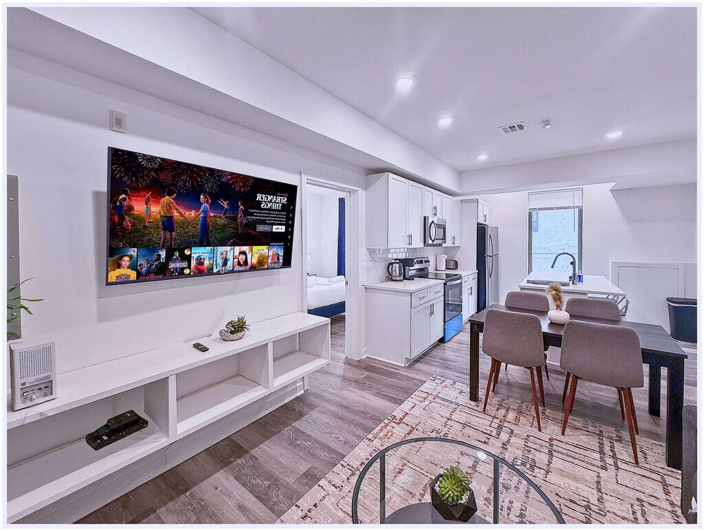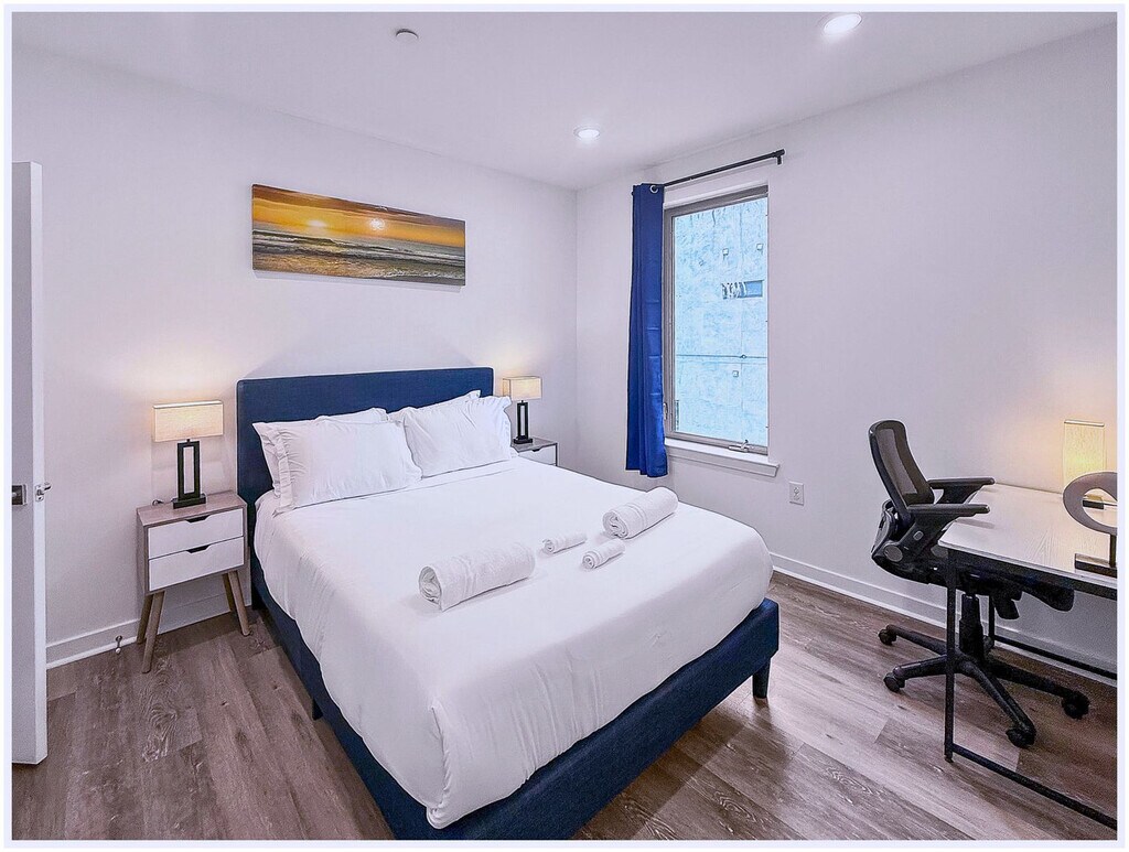 Feel at home in this modern 2-bedroom apartment located in vibrant Olde Kensington. This thoughtfully designed apartment offers contemporary comforts and is ideal for business travelers, families, or weekend getaways. The bright living area features a comfortable sofa and a TV. The fully equipped kitchen includes modern appliances, cookware, and ample counter space. Both bathrooms feature walk-in showers, fresh towels, and complimentary toiletries. Pets are allowed depending on size, please inquire beforehand. The pet cleaning fee is $25 per night for stays of 1 to 4 nights, $200 for stays of 5 to 29 nights, and $300 for stays of 30 or more nights. Just minutes from Fishtown and Northern Liberties, this apartment is near The Fillmore, Rivers Casino, and the Delaware River waterfront. Explore cafes, galleries, live music, and mural-lined streets. This cozy retreat puts you in the heart of Philly’s energy and culture. Smoking is strictly prohibited inside the property, and a cleaning fee of $500 will be charged for any violation. Check-in time is after 4 PM, and check-out time is by 10 AM. Late check-outs without prior approval will incur additional charges. Please dispose of garbage in the designated bins and treat the property and its contents with respect; any damages will be charged to the guest. Includes a dedicated desk area. [SI]