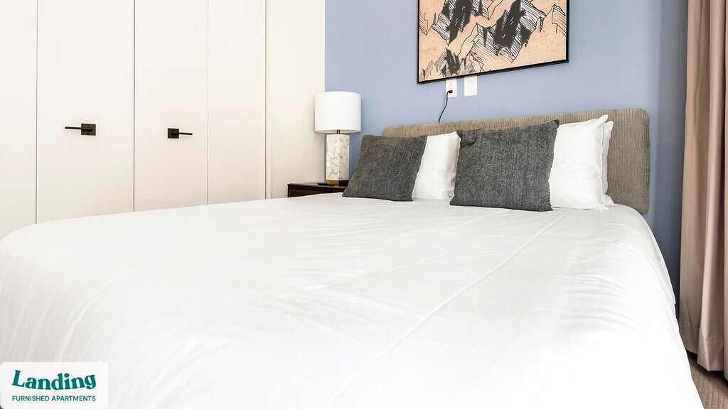 Landing offers flexible lease terms from weeks to months. Please always visit our website or contact us for the latest pricing & availability. Stay longer, save more: 6-Month Minimum base rent: starts at $3115/mo 12-Month Minimum base rent: starts at $2716/mo Landing offers flexible leases across a network of over 35,000 fully-furnished apartments throughout 375+ cities so you can rent on your terms, practically anywhere, and avoid the hassle of paying deposits or application fees. Visit to learn about all the benefits of a Landing membership, see our competitive up-to-date pricing, explore available apartments, take virtual tours, and make reservations online without jumping through traditional rental hoops. Landing's apartments at The Floodgate are designed for comfortable, easy living, with the ability to stay as long as you like. Experience living with Landing Every apartment is outfitted with all the modern essentials including: custom-designed furnishings, a fully-equipped kitchen with deluxe stainless steel appliances, a gourmet coffee maker, premium linens, Smart TVs, and incredibly fast, reliable internet for working from home. When you live with Landing, you'll enjoy a hassle-free experience with the added benefit of 24/7 access to our dedicated member experience team. Some of the nitty-gritty: a background check and proof of income are required; we're completely smoke-free; bundled utility packages and pricing vary based on length of stay; pet-friendly options available; listed price reflects a 12-month minimum stay.