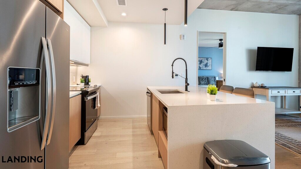 Landing is a top-rated, fully furnished apartment network with thousands of homes across 250+ U.S. cities. With premium amenities, a mobile app to manage your stay, and 24/7 support. Our apartments have everything you need for monthly and longer stays. 6-Month Minimum base rent: starts at $3494/mo 12-Month Minimum base rent: starts at $3602/mo Landing's apartments at The Floodgate are designed for comfortable, easy living, with the ability to stay as long as you like. All Landing apartments include: - Fast Wi-Fi - Stylish furnishings - Fully-stocked bathroom - Smart TVs - Comfortable bed - Professionally cleaned - Guest support Stay longer for cheaper! The longer you stay, the bigger your discount. Price advertised is for a 12-month stay, including all utilities and fees, and may vary based on availability. We manage multiple units at this property. While all feature a similar style and furnishings, the layout and specific design elements may vary slightly from the photos provided. Some of the nitty-gritty: a background check and proof of income are required; we're completely smoke-free; pet-friendly options are available; parking is subject to availability.
