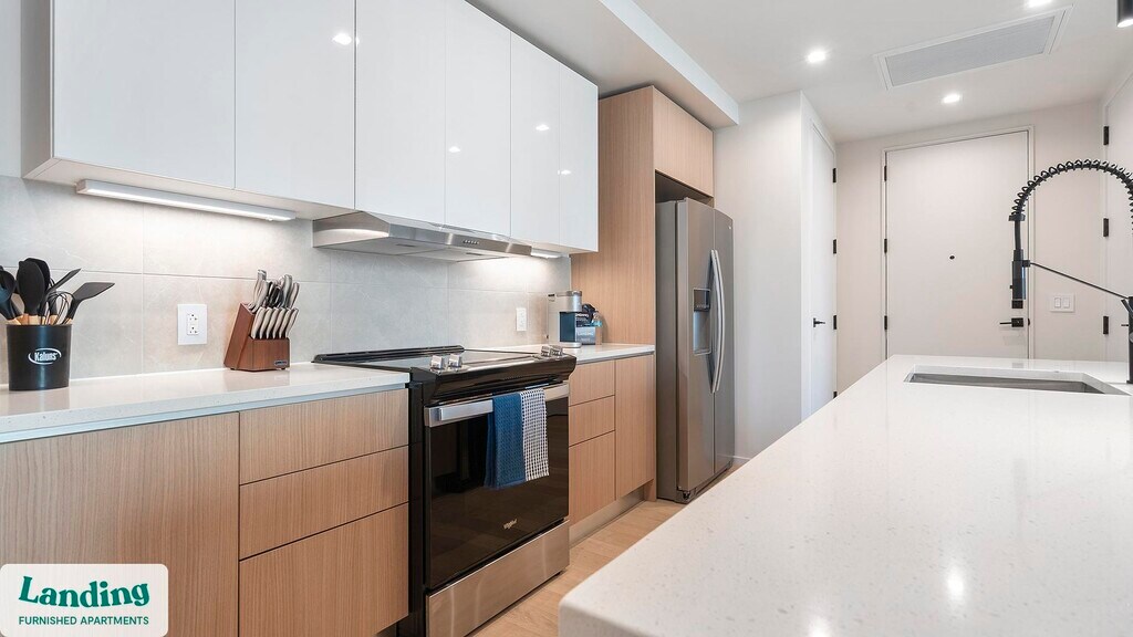 Landing offers flexible lease terms from weeks to months. Please always visit our website or contact us for the latest pricing & availability. Stay longer, save more: 6-Month Minimum base rent: starts at $4724/mo 12-Month Minimum base rent: starts at $4306/mo Landing offers flexible leases across a network of over 35,000 fully-furnished apartments throughout 375+ cities so you can rent on your terms, practically anywhere, and avoid the hassle of paying deposits or application fees. Visit to learn about all the benefits of a Landing membership, see our competitive up-to-date pricing, explore available apartments, take virtual tours, and make reservations online without jumping through traditional rental hoops. Landing's apartments at The Floodgate are designed for comfortable, easy living, with the ability to stay as long as you like. Experience living with Landing Every apartment is outfitted with all the modern essentials including: custom-designed furnishings, a fully-equipped kitchen with deluxe stainless steel appliances, a gourmet coffee maker, premium linens, Smart TVs, and incredibly fast, reliable internet for working from home. When you live with Landing, you'll enjoy a hassle-free experience with the added benefit of 24/7 access to our dedicated member experience team. Some of the nitty-gritty: a background check and proof of income are required; we're completely smoke-free; bundled utility packages and pricing vary based on length of stay; pet-friendly options available; listed price reflects a 12-month minimum stay.