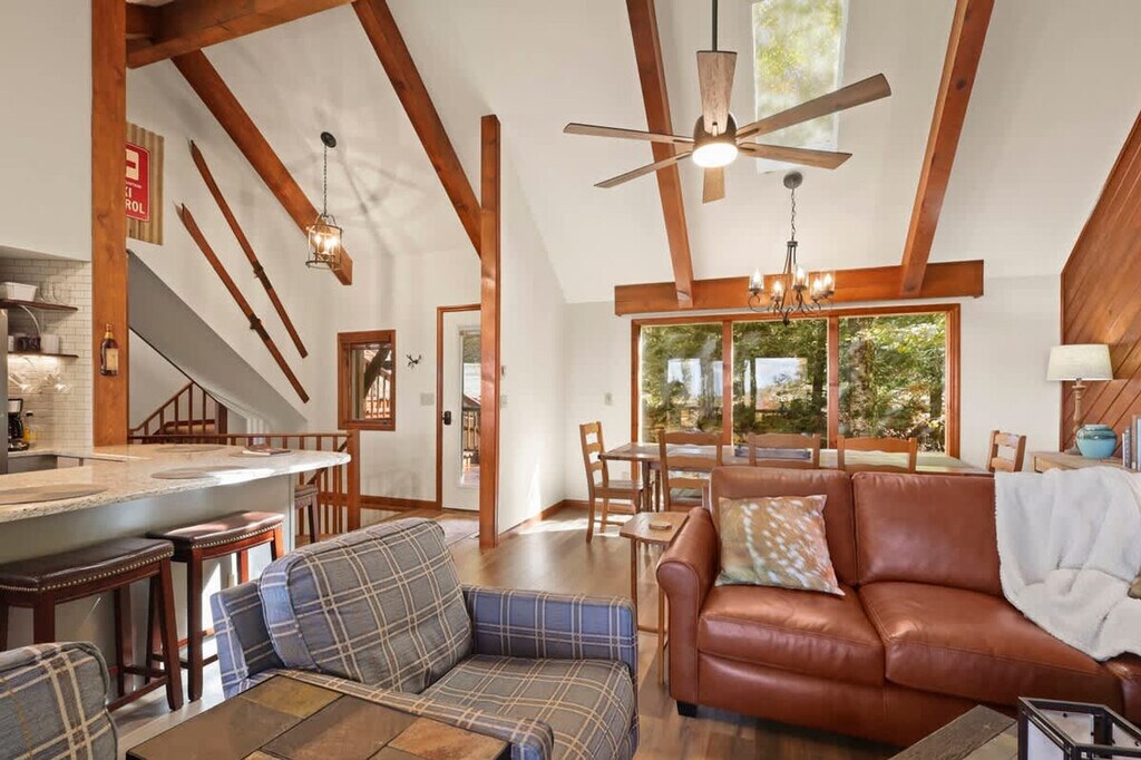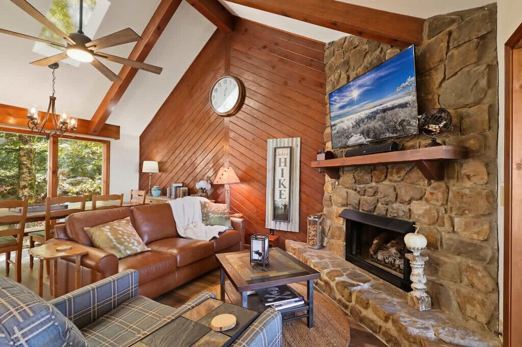 This charming home offers a peaceful retreat for those looking to experience Beech Mountain's beauty in all seasons. With four comfortable bedrooms, each featuring an ensuite bathroom, an inviting living room with a gas fireplace and smart TV, and a fully equipped kitchen with dining for eight, you'll feel at home in this cozy atmosphere perfect for relaxation and adventure. Enjoy spacious outdoor areas with stunning mountain views and parking for four vehicles. This fantastic location is less than five minutes away from Beech Mountain Resort and provides easy access to Buckeye Recreation Center, Sugar Mountain, hiking, skiing, and mountain biking. The fully equipped kitchen and its inviting dining area open onto a vaulted living room, setting the tone for many memorable evenings by the fire. Four comfortable bedrooms, all with attached full bathrooms, provide plenty of room for everyone to relax and unwind. Early check-in and late check-out are subject to availability with a $25 per hour fee. Reach out to the host to inquire. Situated in the small vacation town of Beech Mountain, NC, this home offers a wonderful ambiance and a place to relax and refresh. The serene setting and mesmerizing natural surroundings provide plenty of attractions and places of interest, including a playground with spectacular views, an adventure tower, a seasonal sledding hill, Fred’s General Mercantile, a brewery and taproom, and a history museum. Both Beech Mountain and Banner Elk offer skiing, snowboarding, snow tubing, eco-tourism, zip-lining, mountain biking, off-road ATVs, rafting, fly fishing, hiking, golf, fine dining, and shopping all at your fingertips. Although the Town of Beech Mountain does a great job clearing snow off the main roads quickly in the winter months, it is highly recommended to have 4WD or AWD to access Beech Mountain during winter months. Bringing snow chains is also advised. Quiet hours are between 22:00 and 08:00. No smoking is allowed. Only registered guests may stay overnight, and others are the guest’s responsibility. This is a privately owned home, and the owners aren’t responsible for accidents, injuries, or loss of belongings. By booking, guests assume all risks. Keep the property and furnishings in good order and use appliances as intended. Linens are provided, but there is no daily housekeeping.