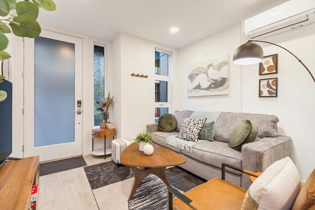 Feel at home in this chic 2-bedroom townhome, offering 1091 sqft of living space in a lively area. This 4-story townhome, including the rooftop, has no steps at the entrance. This carefully crafted townhome features a living room with a queen sofa sleeper, a kitchen, and a dining area on the first floor. The second floor offers a bedroom with a queen bed and a hallway bath with a bathtub and shower combo. The primary bedroom with a queen bed and en-suite bathroom with shower is on the third floor. The kitchen is stocked with high-end kitchen appliances, cookware, silverware, servingware, spices, Keurig coffee and tea. Enjoy high-quality beds, mattresses, pillows, and linens for comfortable sleeping, a smart TV, high-speed internet, and an on-site washer and dryer. The rooftop patio features comfortable outdoor furniture and a great view of the Seattle city skyline. Well-trained pets are welcome at $50 per pet per night. Situated in a bustling area with excellent eateries and cafes, this townhome is tucked away on a side street for peace and quiet. Walk to nearby bus stops (servicing lines 8, 10, and 43) and the link light rail station. The Pike/Pine Corridor in Capitol Hill is an iconic Seattle neighborhood and a prominent hub for food, music, and nightlife. You’ll find excellent brunch and coffee shops, fantastic dining and shopping, bustling nightlife and award-winning bars, world-class entertainment and live music, and enviable transit options all within walking distance. Ride-share services are highly recommended. This is a pet-friendly home, but pets are not allowed on furniture or linens. Please do not leave pets unattended and clean up after them. Parties and events are strictly prohibited, and quiet hours are between 10 pm and 8 am. Smoking or vaping of any kind is not allowed anywhere on the property, including outdoor areas. Digital piracy and shoes in the home are prohibited. A $500 fine will be charged per violation. The home does not have dedicated parking, but a city-issued guest parking permit is provided for free street parking. Street parking is first-come-first-served and can be hard to find depending on the time of day. Paid public parking is available nearby. Registration Number: STR-OPLI-23-001238 [SI]