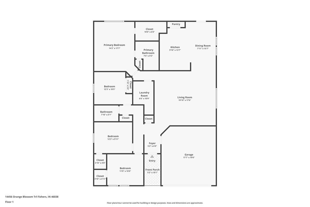 Está localizado en el barrio Fishers Hawthorn Hills, 14456 Orange Blossom Trail en el código postal 46038 de Fishers, IN.