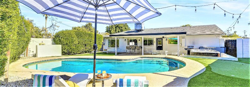 Property Id: 2237169 Updated Single-Level Home in Cavalier Hills - Prime Tempe/So. Scottsdale Location! Welcome to this beautifully updated single-level home situated on a generous 10,010 sq ft lot with NO HOA and plenty of space for parking, including an RV gate, & extra-long driveway. 3 bedrooms, 2 full bathrooms, 1570 sq ft. Gorgeous kitchen w SS appliances and plenty of cabinet and granite counter space. Low maintenance front/backyard with turf, includes private pool, above ground hot tub, large covered patio and putting green. NO Carpet!
