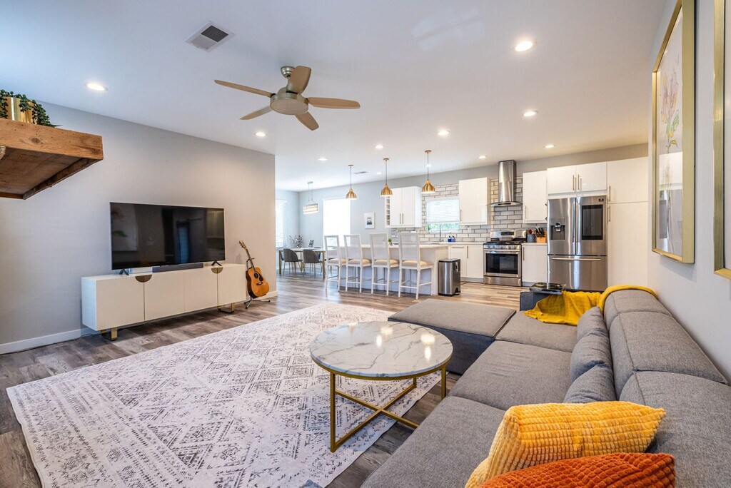 Welcome to The Rose of Sharon, a cozy, family-friendly one-level home just steps from vibrant East Atlanta Village. This charming home offers a fully equipped kitchen, kid-friendly spaces, and a comfy living area. Relax on the covered deck or let little ones play in the fenced backyard. Whether you're here for parks, live music, or a quiet city stay, The Rose of Sharon is your perfect home base. Inside, you’ll find a fully equipped kitchen stocked with everything you need to prepare meals at home—whether it's a quick breakfast or a full family dinner. The adjacent living room is a cozy, welcoming space to unwind after a day of exploring. Two dedicated workspaces and high-speed internet make it easy to work remotely or stay productive during your visit. The home features a smart and flexible layout with three private sleeping areas. At the front of the house, a sunny bonus room doubles as both a guest bedroom with a full bed and a quiet office set-up. In the middle of the home, a Jack-and-Jill bathroom connects two bedrooms—one with a queen-sized bed, and the other with a twin bed and pull-out trundle, perfect for kids or extra guests. At the back of the house, the primary suite offers a peaceful retreat with a king-sized bed, a spacious ensuite bathroom, and direct access to the backyard. Parking is simple and stress-free with four dedicated spaces available on the property. Located in a walkable, tree-lined neighborhood, the home is just around the corner from neighborhood favorites including local restaurants, coffee shops, bars, and the popular Thursday Farmer’s Market. You’re also just minutes from I-20, providing quick access to Downtown Atlanta, Grant Park, Zoo Atlanta, Little Five Points, Inman Park, and the BeltLine. No pets allowed. No smoking permitted in the house. Violation of these rules will result in a $200 charge. Parties and events are not allowed, and there cannot be more than the allowed number of guests on the property at any one time. A late check-out fee of $50 applies for check-outs after 11:00 am if not authorized. Excessively dirty units will incur an additional cleaning fee. If these policies are violated, it will result in your reservation being terminated with no refund and guests asked to leave the premises. Includes two dedicated workspaces and high-speed internet for a seamless remote work experience. A laptop computer is not included.