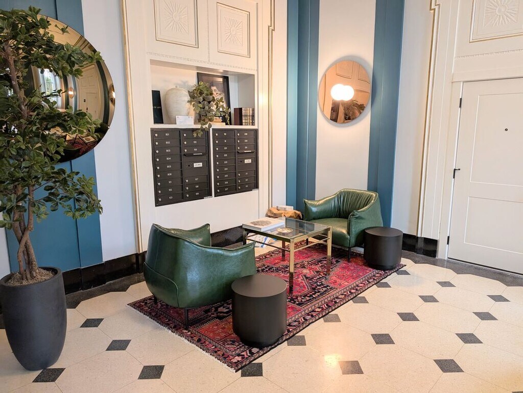 Book a tour by copying this link into your browser Welcome to luxury living in a truly unique space! Stunning duplex loft blending historic charm with modern finishes, located in a beautifully restored former temple in downtown Evanston. Soaring 16' ceilings. Gorgeous kitchen with 42' soft close cabinets, quartz countertop and backsplash, stainless steel appliances. Building boasts a fitness center, bike room, business center with conference room, and resident lounge. Ideally located on tree lined residential street, yet only two blocks to the heart of downtown Evanston shops and restaurants, Purple Line, and UPN Metra station. Some photos may be of very similar unit on same floor.