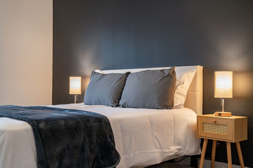 Feel at home in this perfectly located apartment in Bay Lake, just 10 minutes from Disney World. This property sleeps four people and offers a peaceful retreat with all the comforts of home. The apartment features a living room with a full XL sofa bed and a 55" smart TV, a bedroom with a plush queen-size bed and a 43" smart TV, and a fully equipped kitchen with a stove, microwave, refrigerator, coffee maker, dishwasher, full set of cookware and utensils, and a dining table. There is also a relaxing bathtub and shower with complimentary toiletries, an in-unit washer and dryer, and a private balcony with a seated area. Complimentary parking is available for up to three cars. An EV charger is available for electric vehicles for a fee. Located in the heart of Bay Lake, this apartment is minutes away from world-famous theme parks, dining options, and recreational activities. Universal Studios/Island of Adventure and SeaWorld are easily accessible. The Tibet-Butler Nature Preserve and Bay Lake are a short drive away. Orlando Vineland Premium Outlets and Disney Springs are also nearby. The airport is a 30-minute drive away. Many dining and shopping areas are within walking distance. Pets are welcome, but some breed restrictions apply. Quiet hours are between 10 PM and 8 AM. Check-in time is at 4 PM, but early check-ins can be arranged when possible. [SI]