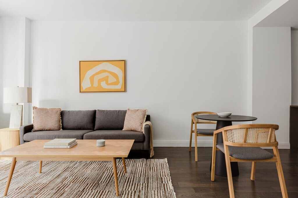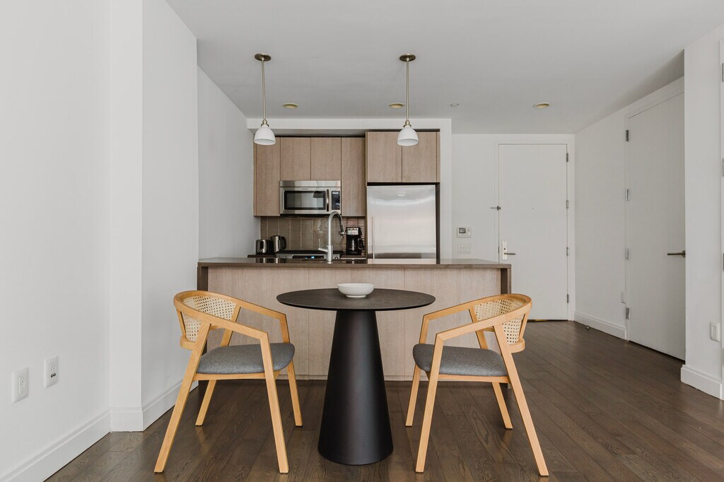 Similar space, but different These photos are of a similar space and style to this apartment. They’re intended to give you a sense of Blueground’s design style. Exact furniture and layout will be different. Be the first to rent! Feel at home wherever you choose to live with Blueground. You’ll love this stylish Powerhouse Arts District furnished one bedroom apartment with its modern decor, fully equipped kitchen, and pretty living room. Ideally located, you’re close to all the best that Jersey City has to offer! (ID #NYC1984) The advertised rate of $4,360/month is the lowest available price, based on a 12 month(s) stay with a move-in date of March 1, 2026. Rates vary depending on the duration of stay, season, and other parameters. For exact pricing and additional pricing components, please visit our website and enter your desired move-in and move-out dates. The rate is applicable when billed upfront; it can be higher if billed in multiple payments. Brokers are welcome to reach out. Were you looking for an unfurnished lease? Try Blueground instead and upgrade from unfurnished to furnished living: - Furnished at rates comparable to unfurnished - No setup or furniture costs - save thousands - Move-in ready - save time, just bring your suitcase Designed with you in mind As with any Blueground apartment, you’ll find a thoughtfully designed space complete with beautiful furniture and a fully equipped kitchen in this one bedroom property. And, thanks to our superior quality mattresses, luxury linens, and towels, you can relax knowing you’ll always feel comfortably at home. When you’re ready for some fun, you can take in the Jersey City vibes or bring the entertainment to you with the premium wireless speaker or smart TV. This apartment also offers in-apartment laundry. Sleeping arrangements King Bed, 70.8in/180cm Amenities Building amenities unique to this one bedroom apartment include an on-site: - Doorman - Dryer - Elevator - Swimming pool - Washing machine - Lounge - Playroom - Rooftop - Rooftop BBQ Arrival and ongoing support The entire apartment is yours to enjoy! Throughout your stay, you’ll have access to our Client Experience team through the Blueground App. You can schedule additional cleanings, submit maintenance requests, and view our neighborhood recommendations with just a few taps. We’ll share all details upon confirmation of your stay. Other things to note Building amenities may have an extra cost. Photos are from a similar property. This Blueground apartment has flexible lease options, allowing you to book it for one month, a year, or more. Brokes CYOF. [SI]