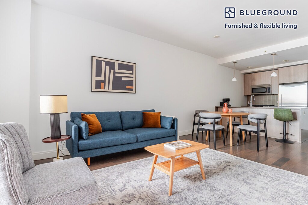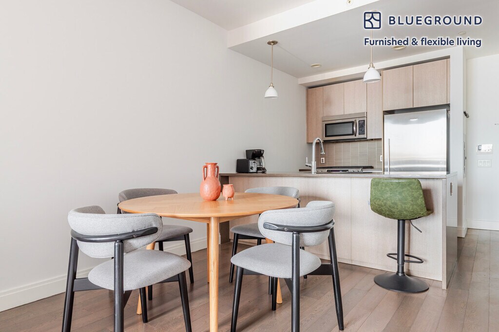Feel at home wherever you choose to live with Blueground. You’ll love this stylish Powerhouse Arts District furnished one bedroom apartment with its modern decor, fully equipped kitchen, and pretty living room. Ideally located, you’re close to all the best that Jersey City has to offer! (ID #NYC1984) The advertised rate of $4,540/month is the lowest available price, based on a 11 month(s) and 29 day(s) stay with a move-in date of April 1, 2027. Rates vary depending on the duration of stay, season, and other parameters. For exact pricing and additional pricing components, please visit our website and enter your desired move-in and move-out dates. The rate is applicable when billed upfront; it can be higher if billed in multiple payments. Brokers are welcome to reach out. Were you looking for an unfurnished lease? Try Blueground instead and upgrade from unfurnished to furnished living: - Furnished at rates comparable to unfurnished - No setup or furniture costs - save thousands - Move-in ready - save time, just bring your suitcase Designed with you in mind As with any Blueground apartment, you’ll find a thoughtfully designed space complete with beautiful furniture and a fully equipped kitchen in this one bedroom property. And, thanks to our superior quality mattresses, fully stocked linens, and towels, you can relax knowing you’ll always feel comfortably at home. When you’re ready for some fun, you can take in the Jersey City vibes or bring the entertainment to you with the premium wireless speaker or smart TV. This apartment also offers in-apartment laundry. Sleeping arrangements King Bed, 70.8in/180cm Amenities Building amenities unique to this one bedroom apartment include an on-site: - Doorman - Dryer - Elevator - Swimming pool - Washing machine - Lounge - Playroom - Rooftop - Rooftop BBQ Arrival and ongoing support The entire apartment is yours to enjoy! Throughout your stay, you’ll have access to our Client Experience team through the Blueground App. You can schedule additional cleanings, submit maintenance requests, and view our neighborhood recommendations with just a few taps. We’ll share all details upon confirmation of your stay. Other things to note Building amenities may have an extra cost. This Blueground apartment has flexible lease options, allowing you to book it for one month, a year, or more. Brokes CYOF. We take great pride in ensuring every photo displayed is shot in our own units with our actual furnishings. That said, we regularly refresh our decor and furniture arrangement, which may differ from what’s pictured. [SI]