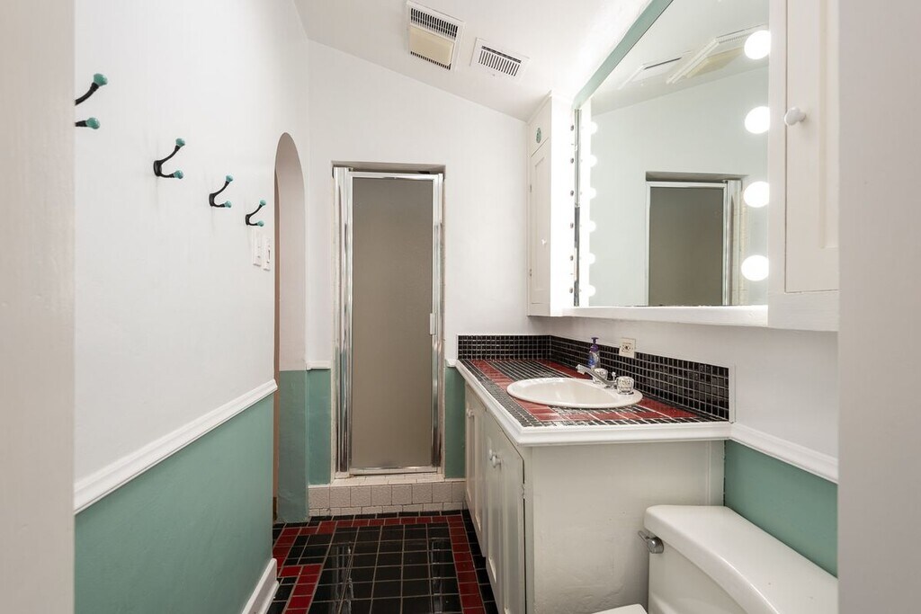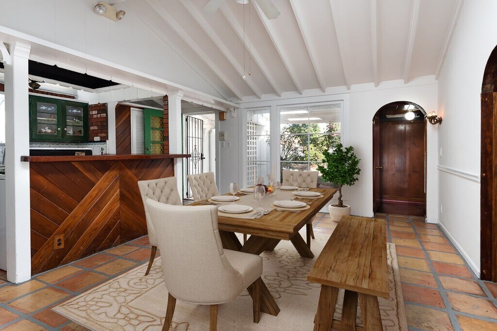Nestled behind a gated front courtyard, this charming rustic mid-century farmhouse radiates vintage, old-world warmth throughout. Located in the highly sought-after Ernie's Walk neighborhood of prime Sherman Oaks, this zen-like single-story residence is truly one of a kind. Offering approximately 2,180 sq. ft., the home features 2 bedrooms plus an additional bonus room perfect as an office, studio, or game room, complete with its own closet. Step inside to a spacious red-brick great room accented with stained glass windows, rich wood flooring, and a cozy fireplace, with French doors that open to an expansive covered patio ideal for year-round entertaining. The primary bedroom also features red-brick accents and wood flooring. The kitchen and dining area blend charm and functionality with built-ins and classic terra-cotta tile flooring, embodying the home's warm, rustic character. Centrally located to all that Sherman Oaks has to offer, The Village at Sherman Oaks, fine dining, boutiques, transportation, the Sherman Oaks Galleria, Fashion Square Mall, and easy access to both the 101 and 405 freeways this unique sanctuary is not to be missed. There is a separate occupied ADU-Accessory Dwelling Unit that has a separate address and mailbox, leased separately from main house.