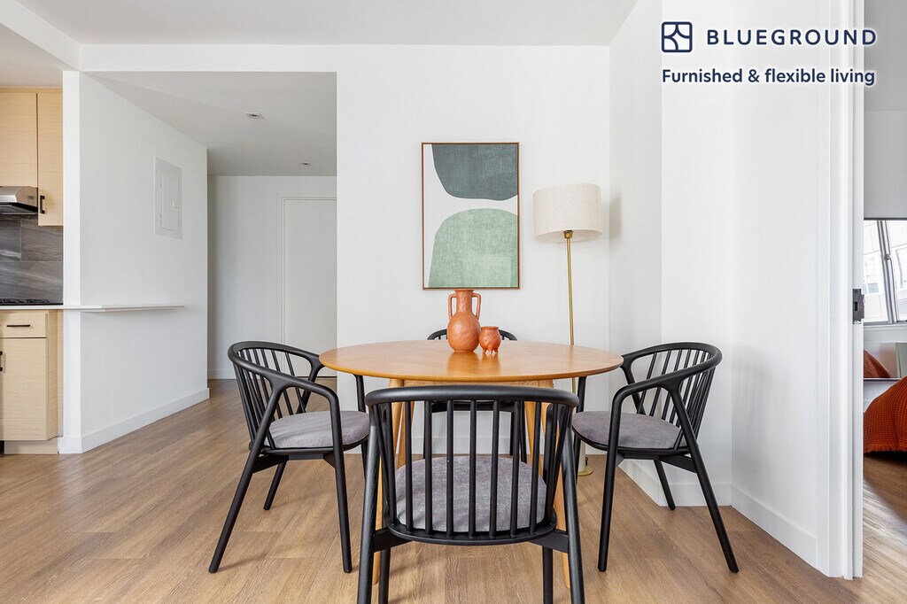 Show up and start living from day one in New York with this comfortable two bedroom Blueground apartment. You’ll love coming home to this thoughtfully furnished, beautifully designed, and fully equipped Financial District home with stunning high floor views over the city. (ID #NYC1444) The advertised rate of $4,920/month is the lowest available price, based on a 1 month(s) and 17 day(s) stay with a move-in date of December 21, 2025. If you’re looking for a 1-year stay, the rate is $6,590/month. Rates vary depending on the duration of stay, season, and other parameters. For exact pricing and additional pricing components, please visit our website and enter your desired move-in and move-out dates. The rate is applicable when billed upfront; it can be higher if billed in multiple payments. Brokers are welcome to reach out. Were you looking for an unfurnished lease? Try Blueground instead and upgrade from unfurnished to furnished living: - Furnished at rates comparable to unfurnished - No setup or furniture costs - save thousands - Move-in ready - save time, just bring your suitcase Designed with you in mind Gorgeous furniture, fully equipped kitchen, smart TV, and a premium wireless speaker are just a few of the amenities you’ll find inside this two bedroom apartment. Ideally located in New York, you’ll find a lot to love outside as well. When you’re ready to relax, you’ll be happy to discover every Blueground bedroom comes with superior quality mattresses, luxury linens, and cozy towels. We handle everything so you can simply show up and start living. This apartment also offers in-apartment laundry. Sleeping arrangements Queen Bed, 63in/160cm Queen Bed, 63in/160cm Amenities Building amenities unique to this two bedroom apartment include an on-site: - Doorman - Dryer - Elevator - Washing machine - Lounge - Pets allowed Arrival and ongoing support The entire apartment is yours to enjoy! Throughout your stay, you’ll have access to our Client Experience team through the Blueground App. You can schedule additional cleanings, submit maintenance requests, and view our neighborhood recommendations with just a few taps. We’ll share all details upon confirmation of your stay. Ideally Located This furnished apartment is located in the Financial District, also known as FiDi. Home to Wall Street, One World Trade Center, the South Street Seaport, and Bowling Green it is a constant hub of activity. During the week the sidewalk is always bustling and the restaurants are filled with professionals. The glittering skyscrapers and well-known landmarks make this one of the city’s most recognizable and historic neighborhoods. By subway, Times Square is about 20 minutes away. Other things to note Building amenities may have an extra cost. This Blueground apartment has flexible lease options, allowing you to book it for one month, a year, or more. Pets are welcome, though weight limits and breed restrictions apply and may incur fees. Brokes CYOF. We take great pride in ensuring every photo displayed is shot in our own units with our actual furnishings. That said, we regularly refresh our decor and furniture arrangement, which may differ from what’s pictured. [SI]