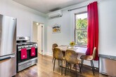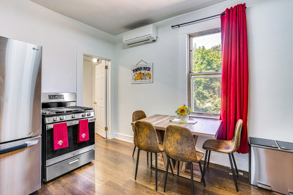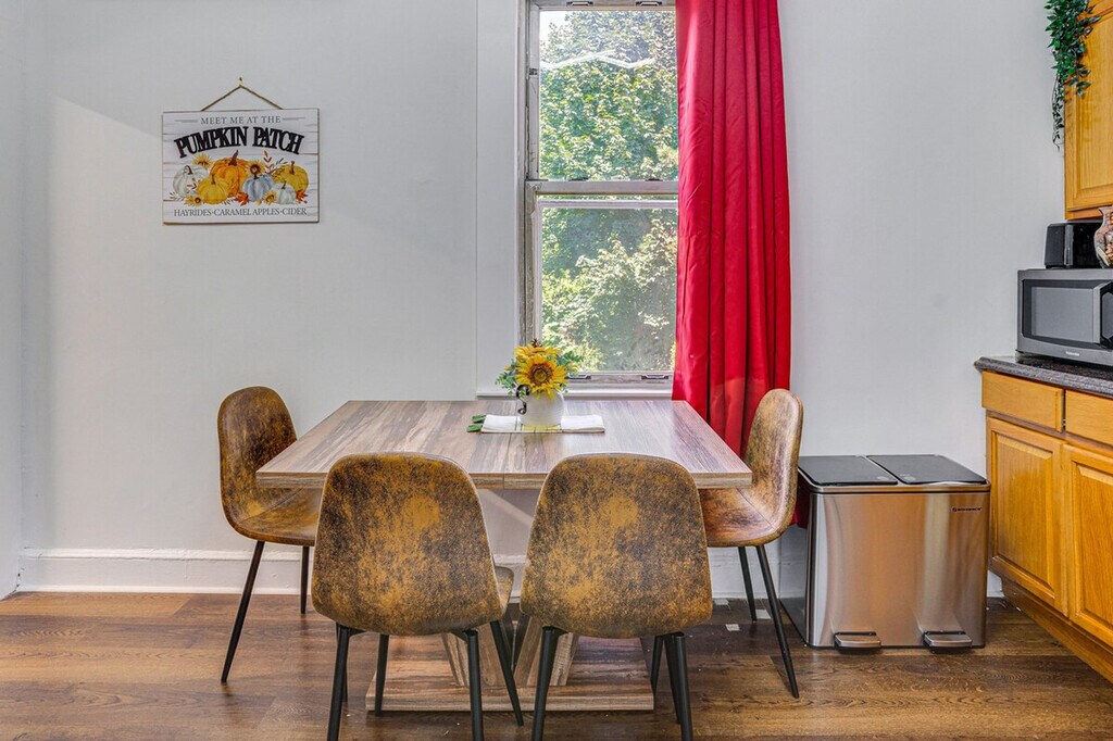 Experience the vibrant energy of game days and the allure of city sights with this charming 2-bedroom, 1-bathroom apartment in Lodi. Situated just one block from buses to New York City, less than a mile from public transit, and only 13 miles from Manhattan, this apartment offers the perfect blend of convenience and comfort. Located on the second floor, this single-story apartment requires exterior and interior stairs to enter, ensuring a cozy retreat after a day of exploring. Feel at home in the inviting living room, complete with an 85" Smart TV and an electric fireplace, perfect for movie nights. The dining table provides a space for shared meals, while the fully equipped kitchen boasts brand-new appliances, including a stove, oven, refrigerator, microwave, Keurig and drip coffee makers, and more. With cooking basics, dishware, and flatware provided, preparing meals is a breeze. Pets are welcome with a $100 fee, plus additional fees and taxes. Free street parking is available on a first-come, first-served basis, ensuring convenience for those traveling with a vehicle. Nestled in a prime location, this apartment is ideal for commuters and visitors alike. Just a block away from buses to New York City and less than a mile from public transit, you'll find it easy to explore the city. Whether you're attending a concert, cheering on the Jets or Giants, or enjoying a stroll through Central Park, the proximity to Manhattan, just 13 miles away, makes this apartment a convenient choice. The apartment enforces quiet hours from 10:00 PM to 8:00 AM to ensure a peaceful environment. Smoking and large gatherings are not permitted. The homeowner resides on-site in a separate unit and may be present during your stay. For your safety, an exterior security camera is located at the front door, monitoring the outdoor entry without intruding on your privacy. Stay connected with complimentary high-speed Wi-Fi, perfect for streaming and remote work. The apartment includes a combination washer/dryer, iron, and ironing board, providing all the essentials for a comfortable stay. [SI]
