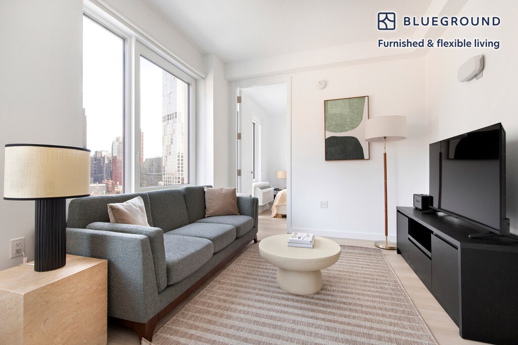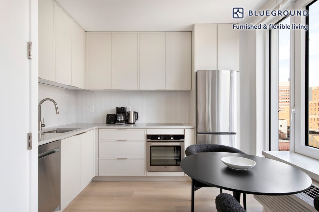 Discover the best of New York, with this one bedroom apartment in Downtown Brooklyn. It’ll be easy to simply show up and start living in this elegantly furnished apartment with its fully equipped kitchen, stylish living room, and our dedicated, on-the-ground support. (ID #NYC2213) The advertised rate of $4,382/month is the lowest available price, based on a 5 month(s) and 21 day(s) stay with a move-in date of March 10, 2026. If you’re looking for a 1-year stay, the rate is $4,551/month. Rates vary depending on the duration of stay, season, and other parameters. For exact pricing and additional pricing components, please visit our website and enter your desired move-in and move-out dates. The rate is applicable when billed upfront; it can be higher if billed in multiple payments. Brokers are welcome to reach out. Were you looking for an unfurnished lease? Try Blueground instead and upgrade from unfurnished to furnished living: - Furnished at rates comparable to unfurnished - No setup or furniture costs - save thousands - Move-in ready - save time, just bring your suitcase Designed with you in mind Gorgeous furniture, fully equipped kitchen, smart TV, and a premium wireless speaker are just a few of the amenities you’ll find inside this one bedroom apartment. Ideally located in New York, you’ll find a lot to love outside as well. When you’re ready to relax, you’ll be happy to discover every Blueground bedroom comes with superior quality mattresses, luxury linens, and cozy towels. We handle everything so you can simply show up and start living. This apartment also offers in-apartment laundry. Sleeping arrangements Queen Bed, 63in/160cm Amenities Building amenities unique to this one bedroom apartment include an on-site: - Doorman - Dryer - Elevator - Washing machine - Lounge Arrival and ongoing support The entire apartment is yours to enjoy! Throughout your stay, you’ll have access to our Client Experience team through the Blueground App. You can schedule additional cleanings, submit maintenance requests, and view our neighborhood recommendations with just a few taps. We’ll share all details upon confirmation of your stay. Ideally Located This furnished apartment is located in Downtown Brooklyn, one of the borough's most sought-after neighborhoods. The bustling area is characterized by both office towers and residential buildings, so there's a wide variety of restaurants serving cuisine from all over the world, night and day. Downtown Brooklyn is also the site of the Brooklyn Academy of Music, a cutting edge arts complex, and it's an easy walk to the foot of the famous Brooklyn Bridge. The neighborhood is served by several subway lines and bus routes, making it easy to get to Manhattan and the city's other boroughs. Other things to note Building amenities may have an extra cost. This Blueground apartment has flexible lease options, allowing you to book it for one month, a year, or more. Brokes CYOF. We take great pride in ensuring every photo displayed is shot in our own units with our actual furnishings. That said, we regularly refresh our decor and furniture arrangement, which may differ from what’s pictured. [SI]