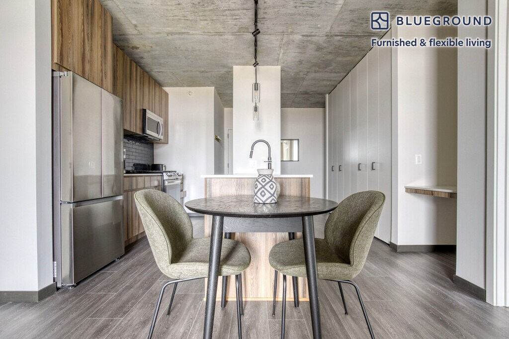 Discover the best of Chicago, with this one bedroom apartment in Near West Side with balcony views over the city. It’ll be easy to simply show up and start living in this furnished apartment with its fully equipped kitchen, living room, and our dedicated, on-the-ground support. (ID #CHI1053) The advertised rate of $4,260/month is the lowest available price, based on a 9 month(s) and 11 day(s) stay with a move-in date of April 2, 2030. Rates vary depending on the duration of stay, season, and other parameters. For exact pricing and additional pricing components, please visit our website and enter your desired move-in and move-out dates. The rate is applicable when billed upfront; it can be higher if billed in multiple payments. Brokers are welcome to reach out. Were you looking for an unfurnished lease? Try Blueground instead and upgrade from unfurnished to furnished living: - Furnished at rates comparable to unfurnished - No setup or furniture costs - save thousands - Move-in ready - save time, just bring your suitcase Designed with you in mind As with any Blueground apartment, you’ll find a thoughtfully designed space complete with beautiful furniture and a fully equipped kitchen in this one bedroom property. And, thanks to our superior quality mattresses, fully stocked linens, and towels, you can relax knowing you’ll always feel comfortably at home. When you’re ready for some fun, you can take in the Chicago vibes or bring the entertainment to you with the premium wireless speaker or smart TV. This apartment also offers in-apartment laundry. Sleeping arrangements Queen Bed, 63in/160cm Amenities Building amenities unique to this one bedroom apartment include an on-site: - BBQ Area - Dryer - Elevator - Washing machine - Lounge - Parking - Pets allowed Arrival and ongoing support The entire apartment is yours to enjoy! Throughout your stay, you’ll have access to our Client Experience team through the Blueground App. You can schedule additional cleanings, submit maintenance requests, and view our neighborhood recommendations with just a few taps. We’ll share all details upon confirmation of your stay. Other things to note Building amenities may have an extra cost. This Blueground apartment has flexible lease options, allowing you to book it for one month, a year, or more. Pets are welcome, though weight limits and breed restrictions apply and may incur fees. Parking is offered based on availability and is subject to a fee. We take great pride in ensuring every photo displayed is shot in our own units with our actual furnishings. That said, we regularly refresh our decor and furniture arrangement, which may differ from what’s pictured. Also note - This apartment is in close proximity to a school, so you can expect noise from time to time - This apartment is located near a railway, so expect to hear moderate noise when trains pass - This apartment includes access to a private terrace [SI]
