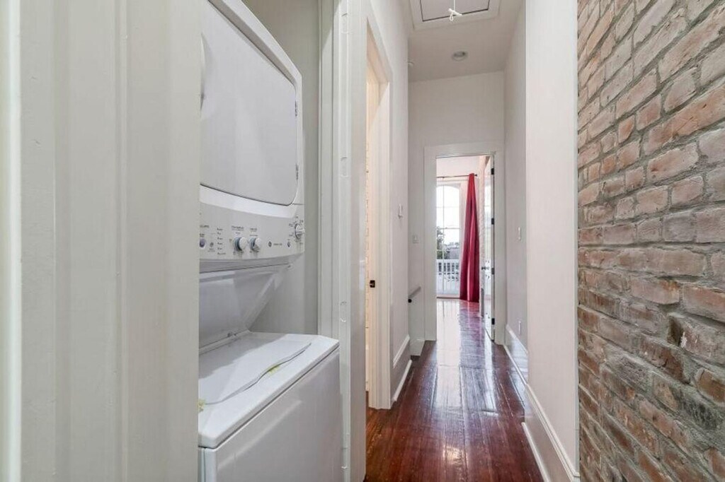 Experience the charm of New Orleans with this unique 2-bedroom, 2.5-bathroom residence on Carondelet Street, designed in the style of traditional Garden District cottages. Situated just a block from St. Charles Street, this home offers a spacious kitchen, living, and dining area on the first floor, with bedrooms and bathrooms located upstairs. Enjoy the view from the front porch overlooking Carondelet Street. The kitchen is equipped with modern appliances, providing all the conveniences of home. The residence features century-old wood flooring, recessed lighting, and granite countertops, with newer units boasting exquisite quartz countertops. Residents can also enjoy a large private courtyard and a shared swimming pool within the secure gated compound. Street parking is available on a first-come, first-serve basis. For an additional fee, daily housekeeping services are available upon request. Located within one block of the St. Charles Streetcar Lines, residents can easily access Mid-City, City Park, the Central Business District, the Garden District, and the Carrollton neighborhood. The vibrant Central Business District is within walking distance, offering premier dining, music venues, and nightlife. The French Quarter is a 15-minute walk or a 5-minute drive away, while the Superdome and Smoothie King Center are a short drive or walk from the residence. Nearby, you'll find renowned restaurants like Emeril’s Delmonico and Lula Restaurant Distillery. This unit is located on the 1st and 2nd floors with no elevator access, requiring stair climbing. Gatherings of more than four people, including overnight guests and visitors, are not allowed and may result in eviction. City residents must book a minimum of a 3-night stay. A state identification card or driver's license copy will be requested upon booking. Smoking is prohibited in the unit and on the balcony, with violations incurring a $250 fine plus cleaning costs. Quiet hours are from 9 pm to 8 am, with violators facing a $200 fine. House parties and illegal substances are strictly prohibited, with violators charged a $500 fine. Pets are not allowed, with violations resulting in a $500 fine plus cleaning expenses. Service animals are welcome with prior contact. Guests must be at least 21 years old to make a reservation, and local resident restrictions apply. Same-day late check-ins require host approval. [SI]
