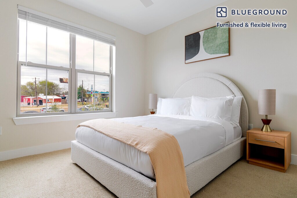 Discover the best of Austin, with this two bedroom apartment in Scofield Farms. It’ll be easy to simply show up and start living in this furnished apartment with its fully equipped kitchen, living room, and our dedicated, on-the-ground support. (ID #ATX365) The advertised rate of $1,760/month is the lowest available price, based on a 1 month(s) and 3 day(s) stay with a move-in date of December 21, 2025. If you’re looking for a 1-year stay, the rate is $1,980/month. Rates vary depending on the duration of stay, season, and other parameters. For exact pricing and additional pricing components, please visit our website and enter your desired move-in and move-out dates. The rate is applicable when billed upfront; it can be higher if billed in multiple payments. Brokers are welcome to reach out. Were you looking for an unfurnished lease? Try Blueground instead and upgrade from unfurnished to furnished living: - Furnished at rates comparable to unfurnished - No setup or furniture costs - save thousands - Move-in ready - save time, just bring your suitcase Designed with you in mind Thoughtfully designed with bespoke finishes, modern furnishings, and a fully equipped kitchen, you’ll enjoy that “I’m home” feeling with this Blueground apartment. Whether you’re lounging in your cozy living room streaming the latest and greatest entertainment on the smart TV or premium wireless speaker, or getting some well-earned rest on the superior quality mattress with luxury linens, you’ll fall in love with everything this Scofield Farms apartment has to offer. This apartment also offers in-apartment laundry. Sleeping arrangements Queen Bed, 63in/160cm Queen Bed, 63in/160cm Amenities Building amenities unique to this two bedroom apartment include an on-site: - BBQ Area - Dryer - Elevator - Swimming pool - Washing machine - Parking - Pets allowed Arrival and ongoing support The entire apartment is yours to enjoy! Throughout your stay, you’ll have access to our Client Experience team through the Blueground App. You can schedule additional cleanings, submit maintenance requests, and view our neighborhood recommendations with just a few taps. We’ll share all details upon confirmation of your stay. Other things to note Building amenities may have an extra cost. This Blueground apartment has flexible lease options, allowing you to book it for one month, a year, or more. Pets are welcome, though weight limits and breed restrictions apply and may incur fees. Parking is offered based on availability and is subject to a fee. We take great pride in ensuring every photo displayed is shot in our own units with our actual furnishings. That said, we regularly refresh our decor and furniture arrangement, which may differ from what’s pictured. [SI]