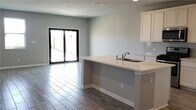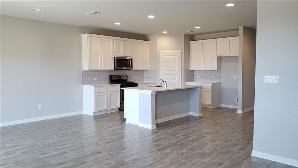 Stylish and versatile, The Travis plan offers privacy and an open concept desired in a new home layout. Walk inside under the covered porch, or enter through the garage, where you can leave your items at the drop zone area with storage. A separate study is tucked away, off the garage entry, across from the laundry room. Two secondary bedrooms are towards the front of the home, sharing access to a full bathroom, just off the foyer. Offering ample counterspace, a corner pantry, and a center island, the kitchen also has 42" white cabinets and white quartz countertops stylish and comfortable for cooking and entertaining alike. Extended gray wood-look tile is found throughout all main living areas, and the great room features recessed can lighting. Retreat into your owner's suite after a long day-complete with dual sinks at the vanity, a private water closet, spacious walk in closet and walk-in shower. Step outside through the sliding glass doors at the dining area, underneath the covered patio to grill or relax in the shade.