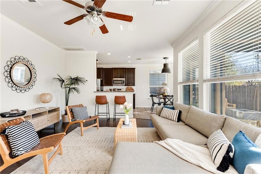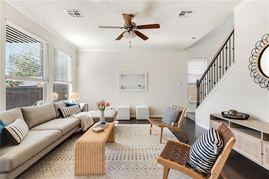 Looking for a warm and welcoming place to call home in South Austin?This cozy 3-bedroom, 2.5-bath home in the friendly Sage Meadow neighborhood has everything you need to settle right in. With soaring ceilings, big windows, new carpet, partial new paint and an open layout, the living spaces feel bright and inviting. The kitchen complete with granite counters and a breakfast bar flows right into the dining and living areas, making it easy to cook, gather, and connect.Upstairs, you ll find all three bedrooms plus a versatile flex space perfect for a home office, playroom, or reading nook. The primary suite is spacious and peaceful, with its own bathroom and walk-in closet. Two additional bedrooms provide plenty of space for family, guests, or hobbies.Outside, a covered patio overlooks the private, fenced backyard, ideal for quiet mornings with coffee or relaxed evenings with friends. A two-car garage and full sprinkler system add extra convenience. Fridge and clothes washer/dryer can come with the lease. Best of all, you re close to everything! Just minutes from Mopac, I-35, and Southpark Meadows shopping, dining, and entertainment. Local favorites like Moontower Saloon and Armadillo Den are even within walking distance.This home is all about comfort, convenience, and easy South Austin living ready for you to make it yours!