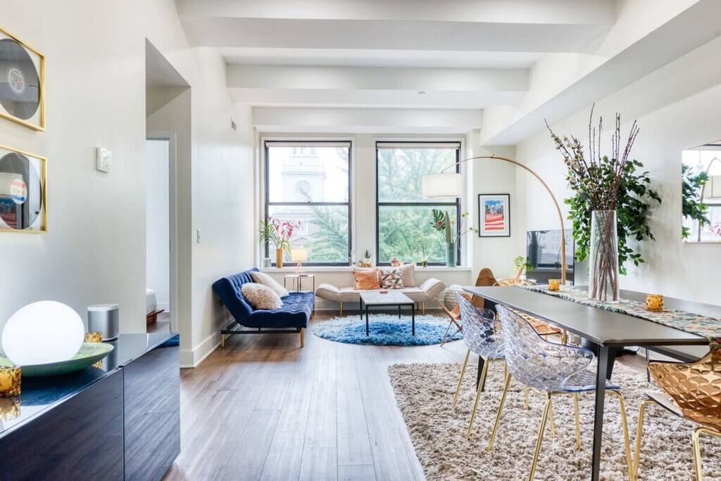 Experience Philadelphia's history with a modern feel at this apartment in The Ledger, a historical building once home to the Public Ledger newspaper in the 1800s. With Philips Hue lights, a Sonos sound system, and an Avocado mattress, this apartment offers everything you need for a perfect stay. Located across two historical monuments and Washington Square Park, this spacious designer loft features historical windows and park views. This apartment offers hotel-level amenities with the perks of a home, providing an elevated stay in one of Philadelphia's most unique buildings. Enjoy a fully equipped kitchen, a smart TV for entertainment, fast Wi-Fi for remote work, and luxe bath amenities. The comfy mattress and soft cotton sheets ensure a restful sleep. Enjoy on-site valet parking with unlimited in-and-out privileges for $40 per night, with discounts for longer stays. Access to a state-of-the-art gym, a community lounge with game tables and a theater, and luggage storage is also available. Extra cleaning services can be requested during your stay for an additional fee. Situated in Center City, this apartment is close to Philadelphia's cultural, historical, and entertainment hubs. Just across the street from Independence Hall, the Liberty Bell, and Washington Square Park, you're also a short walk from Reading Terminal Market and Rittenhouse Square. Center City is home to many tourist attractions, restaurants, bars, and cafes, offering sparkling nightlife and dining options. The building has a 24/7 staffed front desk and an elevator for convenience. There are 4 small steps leading to the building's lobby, but an accessible ramp is available at the left-side entrance on Samson St. Pets are not allowed, and smoking, parties, and excessive noise are prohibited, with violations subject to fines starting at $250. Check-in is at or after 4 pm, and checkout is at or before 11 am. Early check-ins and late checkouts may be available upon request and are subject to additional fees. Guests who stay beyond their designated checkout time or delay housekeeping are liable for costs starting at $55 per hour after 11:30 am. Guests are responsible for any damages, and unreported damages will be deducted from the security deposit. Public and common areas operate video surveillance devices, and guests are responsible for lost keys or passes. The apartment is WFH-ready with fast Wi-Fi, making it ideal for remote work. Registration Number: 851746 [SI]