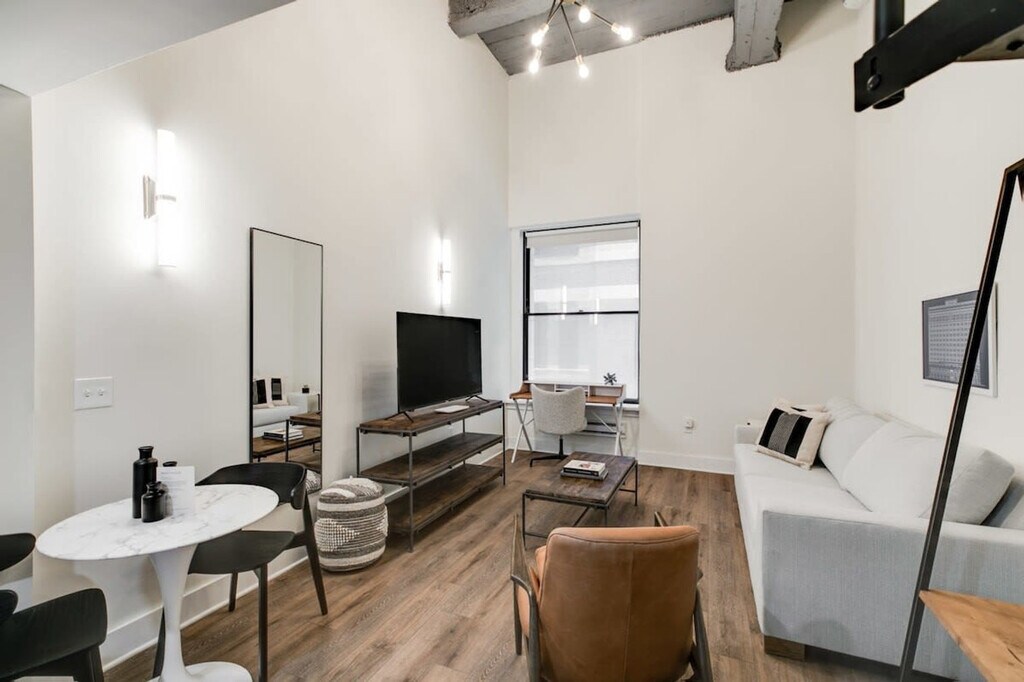 Dive into a blend of historical charm and modern living at this iconic loft apartment, once home to the 1800s Public Ledger newspaper. Located opposite historical landmarks and the verdant Washington Square Park, it’s a prime spot for those eager to immerse in Center City’s rich tapestry. This apartment boasts a sleek loft layout and towering ceilings, equipped with every amenity for stays ranging from brief getaways to year-long residencies. Experience hotel-level amenities with the perks of a home, all paired with an unmatched guest experience. This loft-style unit has a trendy, open feel with high ceilings and exposed pipes, offering a unique living experience. Enjoy a fully equipped kitchen, a smart TV for entertainment, fast Wi-Fi, luxe bath amenities, a comfy mattress with soft cotton sheets, and an in-unit washer-dryer. Enjoy the luxury of our 24/7 valet services for $40 per night, with discounts available for longer parking stays. The state-of-the-art gym is open 24/7, and the community lounge offers game tables, a theater, a kitchen, meeting rooms, and a children's room. A pet spa is available, and the apartment is pet-friendly with a fee of $25 per night, max two pets, capped at $250 per month. Extra cleaning services can be requested during your stay for an additional fee. Encompassing the city’s busiest and most densely packed cultural, historical, and entertaining neighborhoods, Center City features Philly’s premier downtown area as well as an ever-expanding skyline. It’s home to the city’s most historic neighborhoods, including Old City and Society Hill, and many tourist attractions on Independence Mall and elsewhere. Attractions nearby include Independence Hall, the Liberty Bell Center, and Reading Terminal Market. Philadelphia is incredibly easy to navigate by foot or public transportation, with several bus stops, bike ride-sharing stations, and subway stations nearby. There might be a bit of noise now and then due to the open loft-style design. The elevator is available 24/7, and there are four small steps leading to the building's lobby, with an accessible ramp at the left-side entrance on Samson St. Quiet hours are between 22:00 and 7:00. Smoking, parties, and excessive noise are strictly prohibited, with violations subject to fines starting at $250. Check-in is at or after 4 pm, and checkout is at or before 11 am. Early check-ins and late checkouts may be available upon request and are subject to additional fees. Fast Wi-Fi ensures you're WFH-ready, providing a seamless remote work-friendly environment. Registration Number: 851746 [SI]