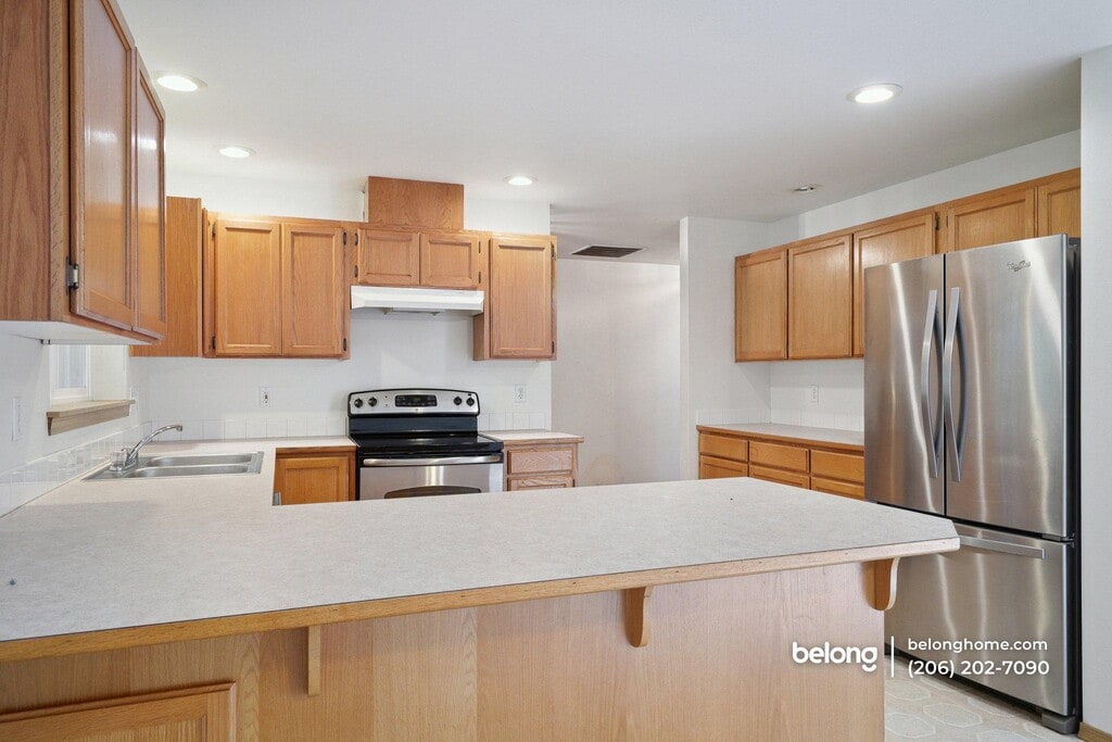 This gorgeous home with NO HOA is designed with thoughtful details for a comfortable and well-balanced feel for daily living. In the living area, the fireplace creates a natural gathering point that feels inviting without overpowering the room. A bay window adds visual interest while bringing in soft natural light that helps the space feel open and relaxed. Meanwhile, in the kitchen, shaker-style cabinetry offers a clean, classic look, paired with stainless steel appliances that include a range with oven, fridge, and hood. In-home laundry is conveniently included, supporting a practical day-to-day setup. The overall layout of this home supports easy movement between shared areas while keeping each space clearly defined, with residents responsible for the ongoing care of the landscaping, garden areas, and trees that are part of the home. Set in Monroe, the location places you close to everyday essentials and local favorites. Grocery options like Fred Meyer, Safeway, and Grocery Outlet are nearby, while dining and coffee spots along Main Street add variety to the neighborhood. Outdoor recreation is easy to access, with Lake Tye Park and nearby trails offering space to unwind or stay active. *Fireplace is for decorative use only and cannot be used without consent from Belong. *Our homes come as-is with all essentials in working order. Want upgrades? Request it through the Belong app, and our trusted pros will take care of the rest!