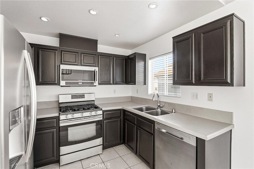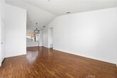 Enjoy a private, serene lifestyle with beautiful views from every window. This two-bedroom, two-bath upper-level end-unit condo offers a rare single-story, open-concept feel with all living space on one level, plus the added convenience of a detached garage, with laundry. Freshly painted throughout, the interior features laminate wood flooring and an abundance of natural light that fills every room. The upgraded kitchen is equipped with stainless steel appliances, durable solid-surface countertops for easy maintenance, and generous wall-to-wall cabinetry providing ample storage. The spacious living room is thoughtfully designed with three large windows, making furniture placement easy while showcasing peaceful treetop views. The primary bedroom suite is generously sized with soaring vaulted ceilings, a walk-in closet, and a private balcony that captures the surrounding scenery. Each room bathes in natural light, enhancing the home s bright and airy atmosphere. Ideally located just minutes from shopping, dining, and convenient access to the 55, 57, 91, and 241 freeways, this home offers both privacy and accessibility. Tucked away and quiet, it truly feels like a hidden gem. Additional value-laundry in the garage, two association pools and spas, a community basketball court, storage racks in the garage, central A/C, and a turnkey, well-maintained condition ready for move-in.