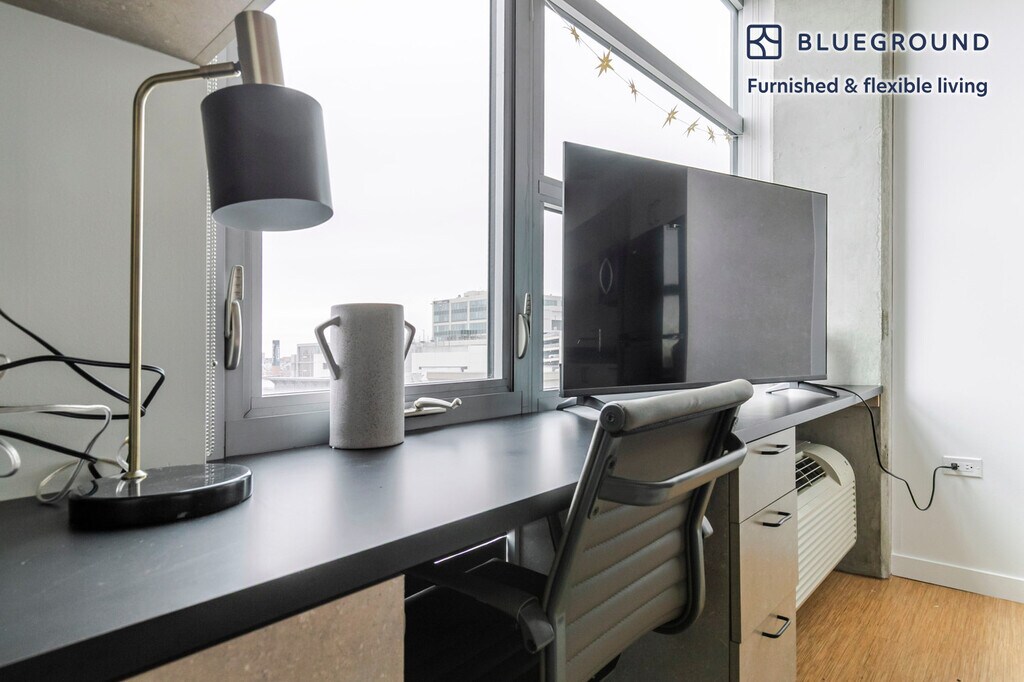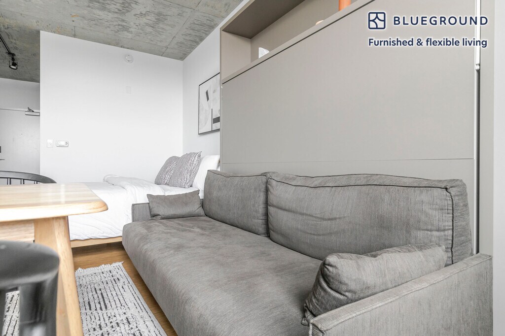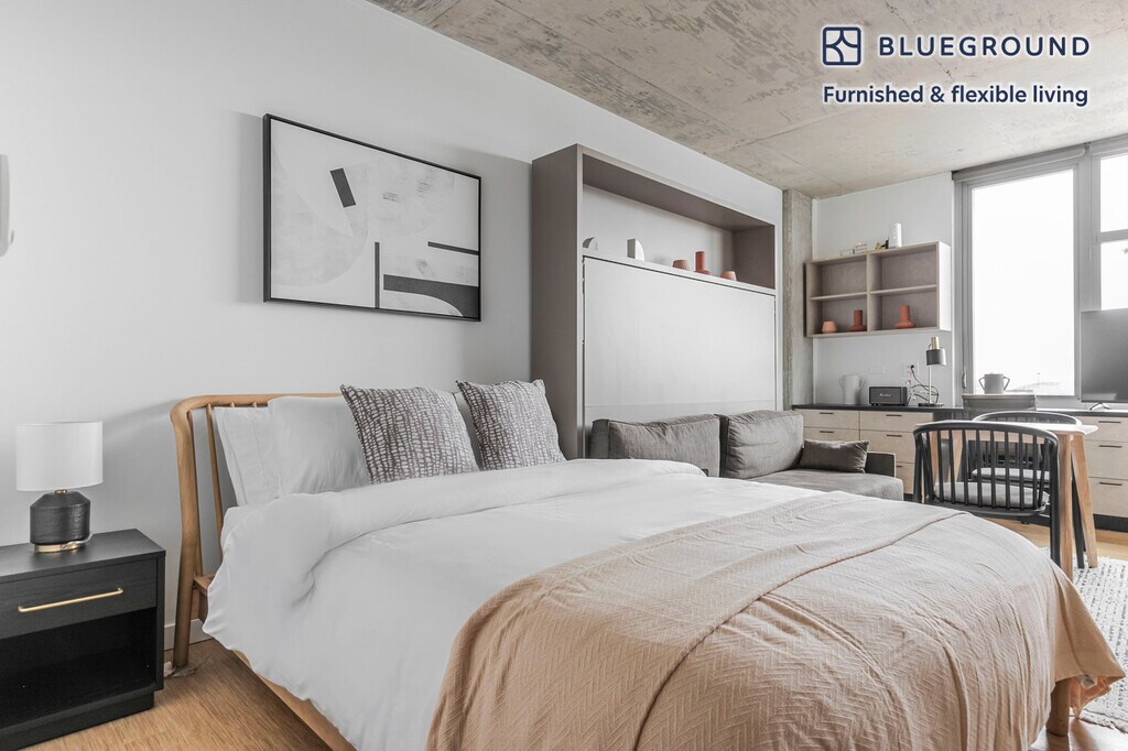 Show up and start living from day one in Chicago with this cozy studio Blueground apartment. You’ll love coming home to this thoughtfully furnished, beautifully designed, and fully equipped Goose Island home. (ID #CHI1283) The advertised rate of $1,310/month is the lowest available price, based on a 1 month(s) and 22 day(s) stay with a move-in date of February 23, 2026. If you’re looking for a 1-year stay, the rate is $1,670/month. Rates vary depending on the duration of stay, season, and other parameters. For exact pricing and additional pricing components, please visit our website and enter your desired move-in and move-out dates. The rate is applicable when billed upfront; it can be higher if billed in multiple payments. Brokers are welcome to reach out. Were you looking for an unfurnished lease? Try Blueground instead and upgrade from unfurnished to furnished living: - Furnished at rates comparable to unfurnished - No setup or furniture costs - save thousands - Move-in ready - save time, just bring your suitcase Designed with you in mind Thoughtfully designed with bespoke finishes, modern furnishings, and a fully equipped kitchen, you’ll enjoy that “I’m home” feeling with this Blueground apartment. Whether you’re lounging in your lovely living room streaming the latest and greatest entertainment on the smart TV or premium wireless speaker, or getting some well-earned rest on the superior quality mattress with luxury linens, you’ll fall in love with everything this Goose Island apartment has to offer. This apartment also offers in-apartment laundry. Sleeping arrangements King Bed, 70.8in/180cm Amenities Building amenities unique to this studio apartment include an on-site: - Dryer - Elevator - Washing machine - Lounge Arrival and ongoing support The entire apartment is yours to enjoy! Throughout your stay, you’ll have access to our Client Experience team through the Blueground App. You can schedule additional cleanings, submit maintenance requests, and view our neighborhood recommendations with just a few taps. We’ll share all details upon confirmation of your stay. Other things to note Building amenities may have an extra cost. This Blueground apartment has flexible lease options, allowing you to book it for one month, a year, or more. We take great pride in ensuring every photo displayed is shot in our own units with our actual furnishings. That said, we regularly refresh our decor and furniture arrangement, which may differ from what’s pictured. [SI]