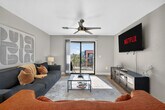 Feel at home in this brand-new 3-bedroom suite near Surprise Stadium. This modern retreat offers resort-style living for up to 10 guests, with thoughtful kid-friendly touches. This spacious home is designed for comfort and fun, featuring games, 2 TVs with streaming, plush beds, and a fully stocked kitchen. The living room offers cozy seating, a sofa, a pullout, a coffee table, a Smart TV, and a large dining table. The fully equipped kitchen includes brand-new appliances, stocked cookware, utensils, and essentials, along with a coffee maker, mugs, kettle, wine glasses, and an opener. All bedrooms feature plush linens, cozy pillows, ceiling fans, bedside lamps, and thoughtful décor. A washer and dryer are located near the bedrooms, and detergent is provided. Enjoy access to a pool, hot tub, fire pit lounge, outdoor games, and a 24/7 gym. There is a $10 fee per guest after 6 guests. Enjoy the private outdoor patio and the community amenities. Check-in and check-out times are mandatory unless scheduled and confirmed at a minimum of 24 hours in advance. Early check-in or late check-out can be requested for a $30 fee. A $60 per hour penalty will be applied if you fail to check out by 10 am or by the agreed-upon check-out time. No shoes are to be worn inside the home, especially on the carpeted areas. Quiet hours start at 10 pm on weeknights and 11 pm on weekends, ending at 7 am. No parties and/or large noisy social gatherings are permitted; there is a $250 surcharge charged to groups that are deceitful about the use of the house, and guests partying will be asked to vacate the property immediately without refund. There is a strict no-smoking policy in all units, and you will be fined $500 if you violate it. A surcharge of $100 per undeclared guest per night will be applied for unapproved guests. If any personal property is damaged, lost, or stolen, or if the cleaning company requires additional time to clean up, you will be charged accordingly. Lock all windows and doors if you are not home. Garbage is not to be left inside the unit upon check-out; there are dumpsters within the community you can put your trash in before leaving. Listing photos are temporary. The home is currently being finalized and will be fully ready by Dec 19, with even more games and finishing touches! [SI]