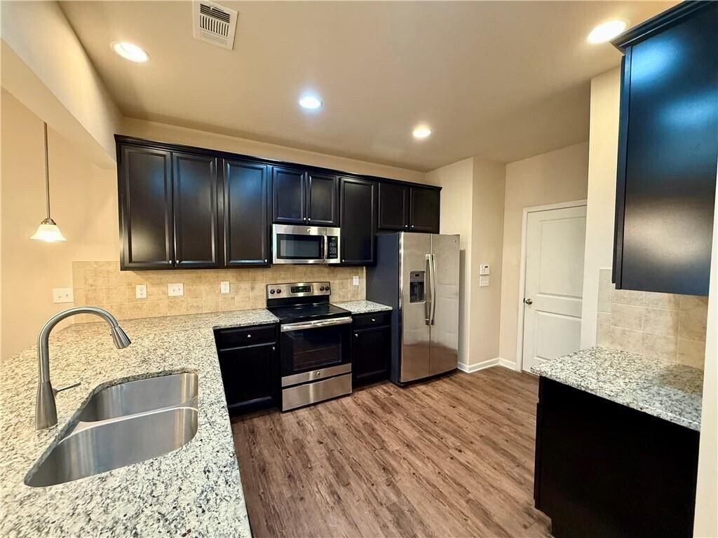 Spacious townhome for lease featuring a large family room, 4 bedrooms, and 2.5 bathrooms. An extended foyer opens to a bright family room that flows seamlessly into the open-concept kitchen and breakfast area with bar seating—ideal for everyday living and entertaining. The kitchen is equipped with granite countertops, stainless steel appliances, and upgraded 42" dark espresso maple cabinets throughout. Upstairs offers four generously sized bedrooms and two full bathrooms, including a spacious owner’s suite with peaceful wooded views. The owner’s bath features dual vanities, a separate soaking tub, and shower. Beautiful, private, and wooded, this 4-bedroom / 2.5-bath home in the desirable Brookstone Subdivision is available now—a rare rental opportunity that won’t last. GA 400 N to Exit 16.