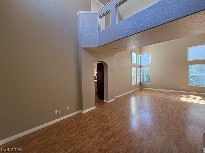 Spacious 3-bedroom home located in desirable Peccole Ranch featuring vinyl wood flooring and vaulted ceilings that create a bright, open feel. The kitchen offers an eat-in island with granite countertops, butcher block island, breakfast nook, and all appliances included. Cozy living area includes a fireplace, while the primary bathroom features both a tub and separate shower. Ceiling fans throughout add comfort. Enjoy a covered rear patio and a 2-car garage for added convenience.