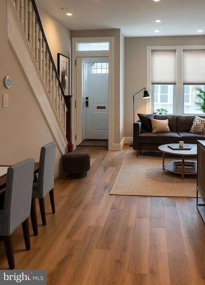 Welcome to this 3/4 bedroom 2 story home. As soon as you open the front door you enter a vestibule with glass doors that lead to a clear span open floor plan with high ceilings and an view to the newly installed up to the minute kitchen with stainless steel appliances complimenting the sharp white kitchen cabinets - and island/ breakfast bar and access to private rear patio.Yes, there is a powder room ; recently added to the floor plan on the entry level.Upper level has three full size bedrooms and a bonus room (with window) for your added convenience of an office, study, dressing room or guest room,The basement is full size that accommodates the full size washer/dryer.