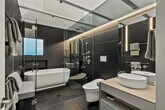 Venice Beach Custom Home - Available for lease for the first time Exceptional location is just the start of this luxury smart home’s charm. Just a half a block from Abbot Kinney Boulevard and approximately four blocks from world famous Venice Beach, this 1-bedroom, 1-bath retreat puts the best of Venice living right at your doorstep. Walk to the beach, explore the iconic Venice Canals, or enjoy world-class shopping and dining just steps away on Abbot Kinney. Beyond the private gated entrance, a Japanese-inspired landscape and natural Ipe deck lead you to contemporary sliding doors that open wide to create a true indoor–outdoor living experience. This is a very special, very private home. Main Features: Thoughtfully designed interior/exterior: With approximately 1000 square feet, this smart home layout with high vaulted ceiling and open floor plan, blends modern elegance with effortless functionality. Custom cabinetry throughout includes full-size pantry, numerous pull-out shelving closets and cabinets, utility/cleaning closet, and a dedicated laundry space with LG ThinQ washer and dryer. Luxury bedroom, closet & bathroom: The bedroom flows seamlessly into a custom walk-in closet, complete with a full-length mirror that opens to reveal hidden shoe shelving for over 20 pairs of shoes. The bathroom is a true centerpiece, featuring floor to ceiling tiles, a soaking tub for two, a walk-in shower complete with wall jets and a rain shower, wall hung full feature smart toilet, and a dramatic glass ceiling. Functional garages and exterior: This home features two separate garages with alley access offering rare versatility for Venice living. The first garage, finished in smoky grey with open entry, is pre-wired for EV charging. The second is fully enclosed, painted white, with a window and side door, making it ideal as an office, studio, or hobby space if not used for parking. Also includes additional pre-wired outlet for EV charging and separate laundry hookup. A Venice Beach gem, offering elegant design, smart living, and effortless access to the very best of Venice.
