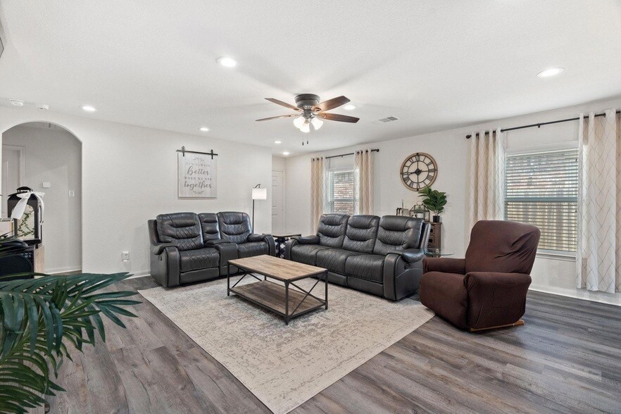 Listed for LEASE and for SALE! $500 off first month's rent! Welcome to 153 Proclamation Avenue, a charming single-story home located in the desirable Liberty Parke community of Liberty Hill. This 3-bedroom, 2-bathroom residence features a well-planned open layout that s ideal for both everyday living and entertaining, and no carpet makes it easy to maintain! As you enter, you'll find a spacious living area that flows easily into the dining space and kitchen. The kitchen features generous cabinetry, easy-to-maintain countertops, and a functional bar-style island. Just off the kitchen, step into the backyard where you'll find an extended patio and a spacious, open yard offering endless potential for outdoor entertaining, gardening, or designing your own custom retreat. The primary suite is set at the back of the home for added privacy and includes a walk-in closet with a custom organizer and an en-suite bathroom. Liberty Parke residents enjoy access to a range of community amenities, including one of the few community pools in all of Liberty Hill, as well as a dog park, playground, and walking trails. The location is also convenient to Liberty Hill ISD schools, local dining, the newly opened H-E-B, and major roadways like Highways 183 and 29, offering an easy commute to surrounding areas. This well-maintained home offers comfort, functionality, and a true sense of community an excellent opportunity in one of Liberty Hill s most welcoming neighborhoods.