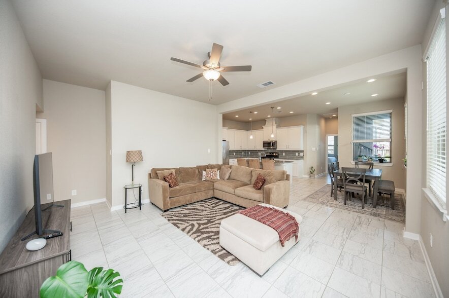 Immaculate, move in ready home. Located in the award winning master planned community of Sienna, this home has 3 bedrooms and 2.5 bathrooms. Downstairs features an open concept plan with light filled rooms and high ceilings. The kitchen is a cook's kitchen with a gas range and granite countertops and plenty of cabinets. The primary bedroom is tucked away in the back of the home giving privacy and the ensuite bathroom has a super shower and dual vanities. The upstairs features a large game room perfect for entertaining and 2 bedrooms. Has a covered patio and a fenced in backyard with a sprinkler system. Double wide driveway with a 2 car garage. Can walk/bike to the NEW elementary school- Ferguson Elementary. Also zoned to the brand new high school. Sienna features many amenities including waterpark pools, fitness centers. tennis courts, walking trails, dog park, horse stables, golf course and so much more. Refrigerator, washer and dryer are included.