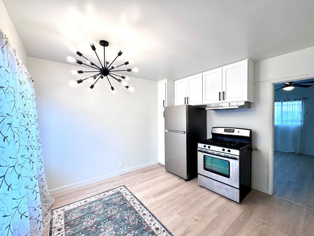 Welcome to this beautifully remodeled 2-bedroom, 1 bath apartment located in the vibrant Harvard Park area of South L.A. Unit is approximately 760 SF and boasts modern upgrades throughout. The unit is located at the back of the property so it's quiet and gets great morning and afternoon sunlight. Stay cool with wall AC and ceiling fans in the living room and bedrooms and warm with a wall heater in the center of the unit. The large kitchen can fit a dining set and comes equipped with a refrigerator and stove. Community laundry is available onsite. The unit is pet friendly (1 small dog under 30 lbs is allowed) and of course, Section 8 is welcome. Don't miss this great unit convenient to the Jackie Tatum Harvard Park Aquatic & Recreation Center and the Frank Garnett Field. Credit, eviction and background check is required. No smoking.