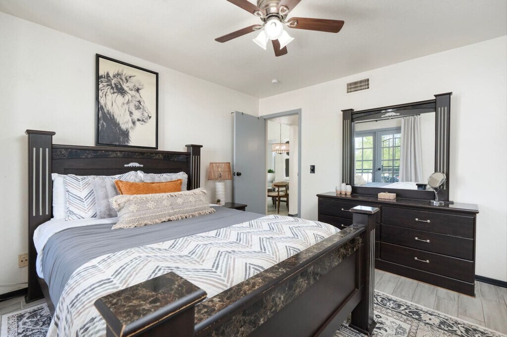 Enjoy easy access to everything from this perfectly located home base. Feel at home in this apartment. Please, no additional guests other than the ones staying, unless arranged otherwise. Violating this will result in a $200 charge per person per day. Any excessive cleaning required is $50 per hour. Tampering with security equipment is grounds for immediate cancellation of the booking. Loss of key will be a $100 replacement. Only dogs are allowed, and bringing another animal after violating the house rules will result in being asked to leave the premises and possibly fined $200. There is a zero tolerance policy for smoking, vaping, or drug use, and violating this will result in a $500 fine. No parties are allowed, and having a party will result in being asked to leave with no refund. If there are any noise complaints or the police are called, you could be asked to leave with no refund. Late checkouts can be arranged when available, but will be an additional $100 fee and must be requested 24-48 hours in advance. A $150 charge applies to guests still on the property after checkout time to respect proper cleaning time for arrival of next guests. The cleaning crew will enter the home at 11 AM to clean. Anyone still in the house two hours after checkout will then pay that day's base rate (without discounts, this does not grant you access to the property for the day.) If another guest must be refunded due to you staying in the property, you will reimburse for any refunds given. Note that any damage resulting in blocking days off in the calendar will result in you paying the days rate for however many days it took to restore the property. No crypto mining is allowed on premises, and if it is found that this is happening, you will be asked to leave and no refund will be issued. Be respectful of the neighbors, as this is a family-friendly neighborhood. [SI]