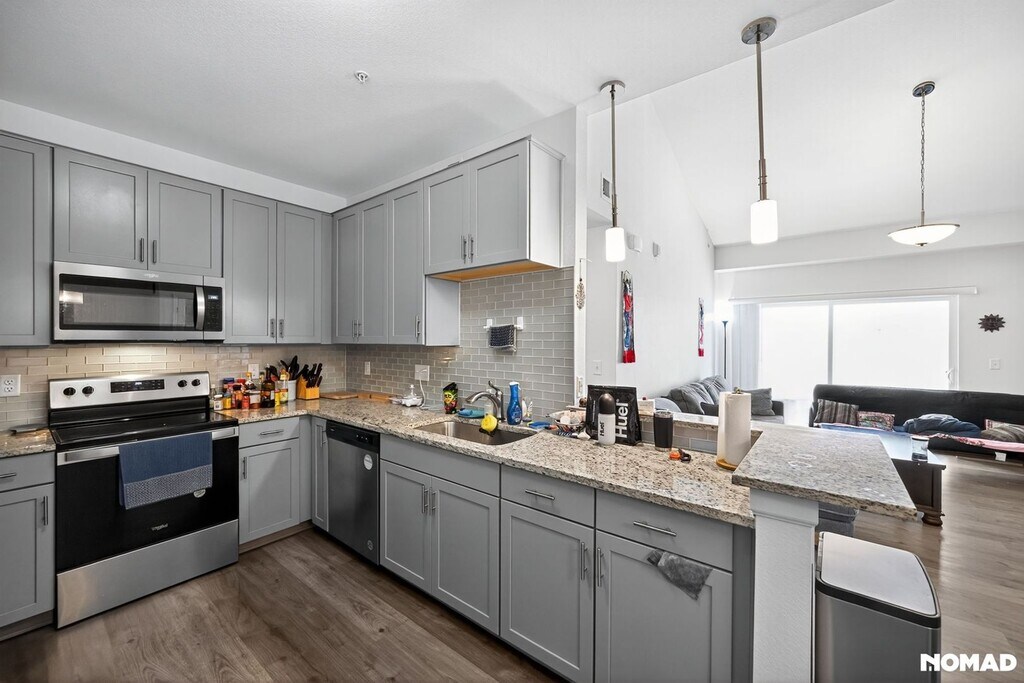 Built in 2022, this elegant and airy condo is nestled within a wonderful gated community. A 1-car detached garage plus an additional off-street parking space are included! The luxurious open-concept layout features high ceilings, central A/C, and vinyl plank flooring throughout the main living areas. Step out onto your private balcony to take in spectacular views while enjoying the Colorado sunshine. The stunning kitchen is a chef's delight with stainless steel appliances, a sleek tile backsplash, solid granite countertops, and soft-close cabinetry. The spacious primary suite boasts soaring ceilings, a generous walk-in closet, and a gorgeous en-suite bathroom with double vanities, an oversized shower, and granite counters. Two large guest bedrooms, full guest bathroom, and in-unit washer/dryer (included) add to the home's convenience. Residents enjoy access to a clubhouse, fitness center, pool, and outdoor hot tub within the community. Located in the sought-after Cherry Creek School District (Red Hawk Ridge, Liberty, Grandview) with quick access to I-25 and E-470, close to Centennial Airport, fantastic restaurants, shops, and scenic walking/biking trails. LEASE TERMS: Available now. 12 or 24 month lease preferred. Dogs/cats allowed. Tenant responsible for electricity/gas, internet/cable. Owner/HOA includes water/sewer, snow removal, trash. Security deposit equal to one month's rent. Security Deposit amount determined by the owner. For each pet, there is a refundable security deposit of $200 and monthly fee of $35. What your Resident Benefits Package (RBP) includes for $45/month? - $250,000 in Personal Liability Protection - $20,000 in Personal Belongings Protection - Credit Booster for On-time Payments - 24/7 Live Agent Support & Lifestyle Concierge - Accidental Damage & Lockout Reimbursement Credits - And So Much More